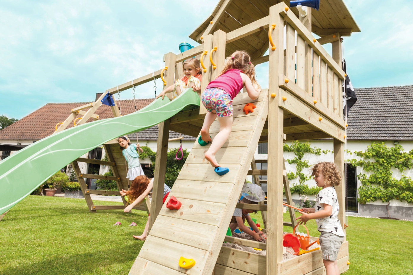 L’élément additionnel @Wall est un mur d’escalade robuste et stimulant pour l’aire de jeu. Avec des prises d’escalade colorées et de différentes formes. Ce mur d’escalade mesure 50 cm de large et s’adapte à toutes les aires de jeu Blue Rabbit avec une certaine hauteur de plateforme.