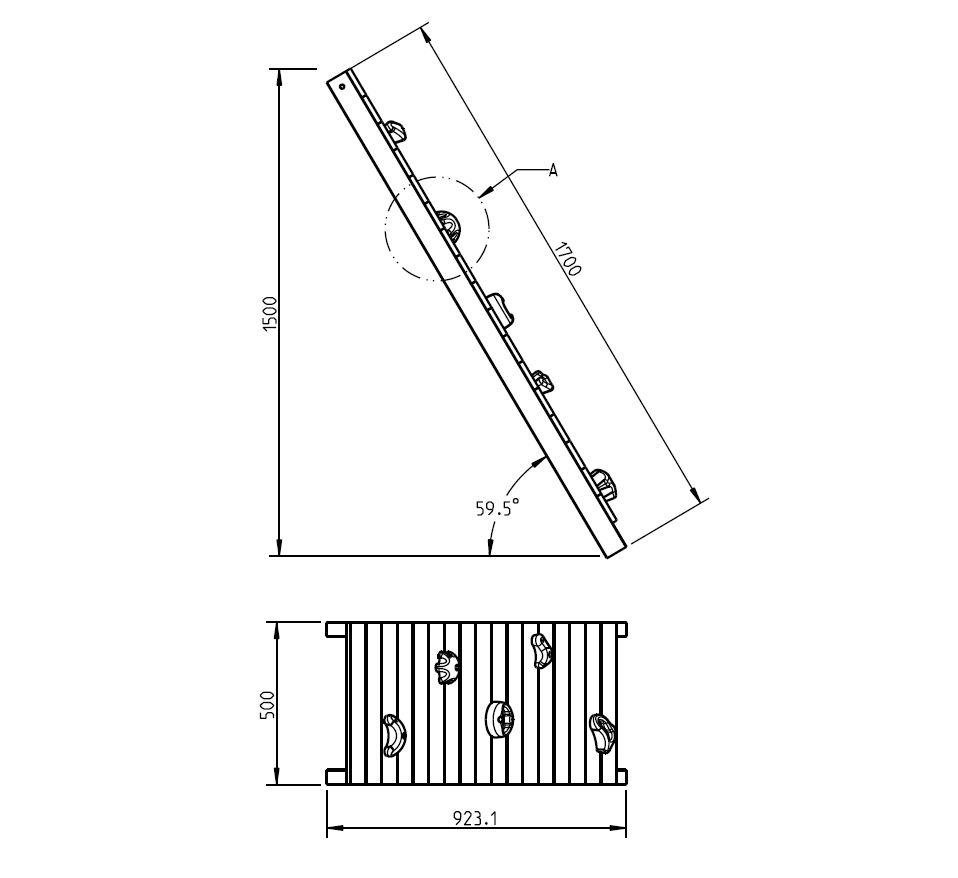 L'élément d'extension @wall est un mur d'escalade solide et stimulant pour l'aire de jeu. Avec des prises d'escalade colorées et amusantes de différentes formes. Ce mur d'escalade a une largeur de 50 cm et peut être utilisé sur tous les équipements de jeu Blue Rabbit avec une hauteur de plateforme de 150 cm.