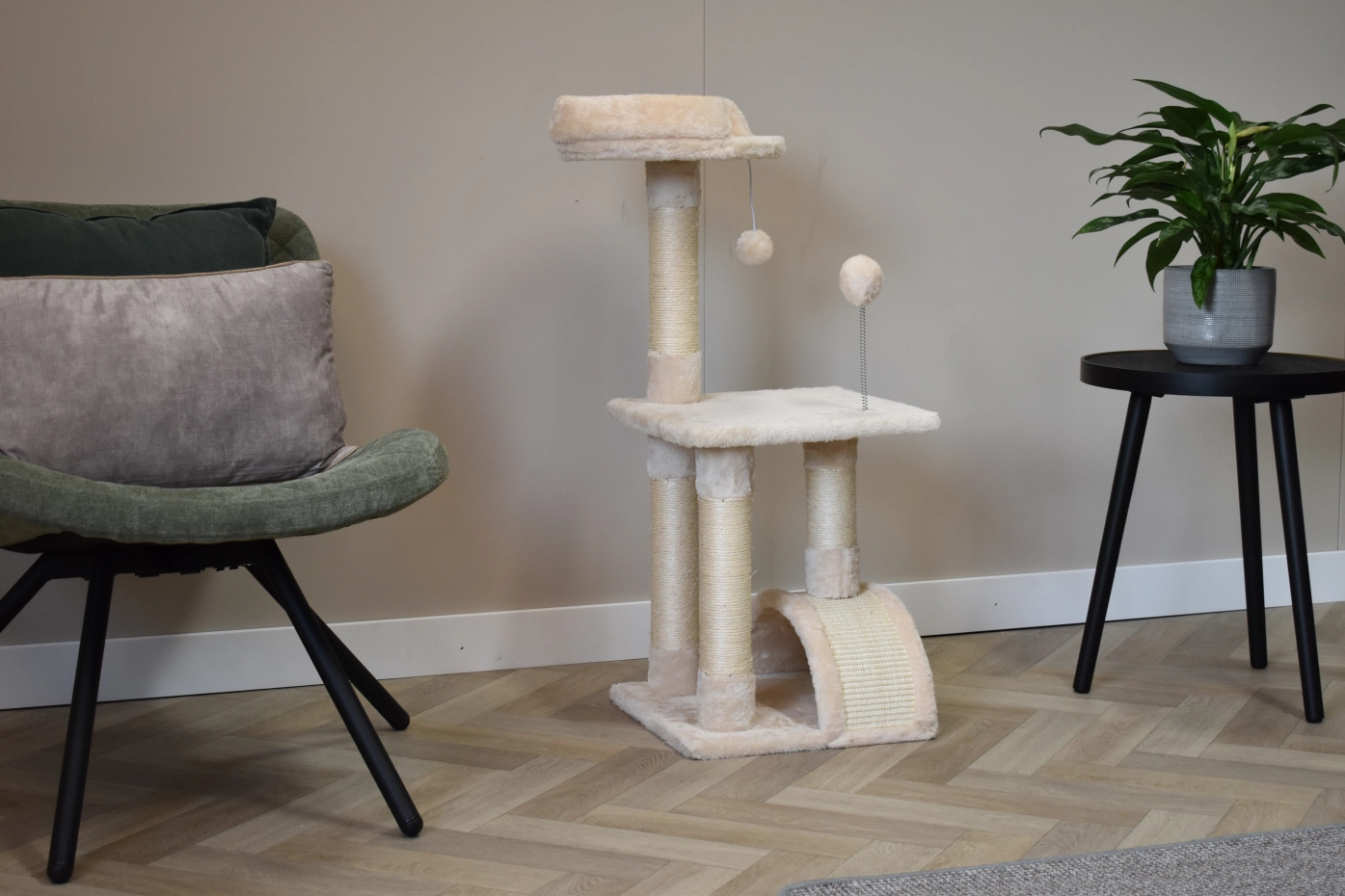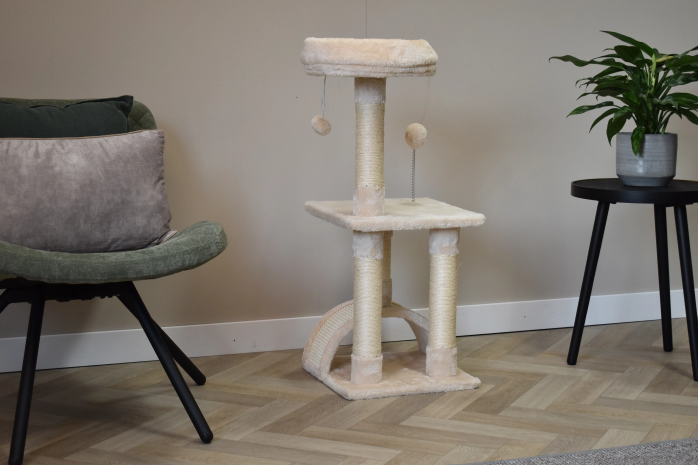 Le poteau à gratter Katja offre beaucoup de possibilités à jouer pour votre chat. Le poteau a 2 plate-formes du couchage, sisal poteaux et une pont en sisal. Le poteau a un bel couleur et est approprié pour chats de petite à moyenne taille.
