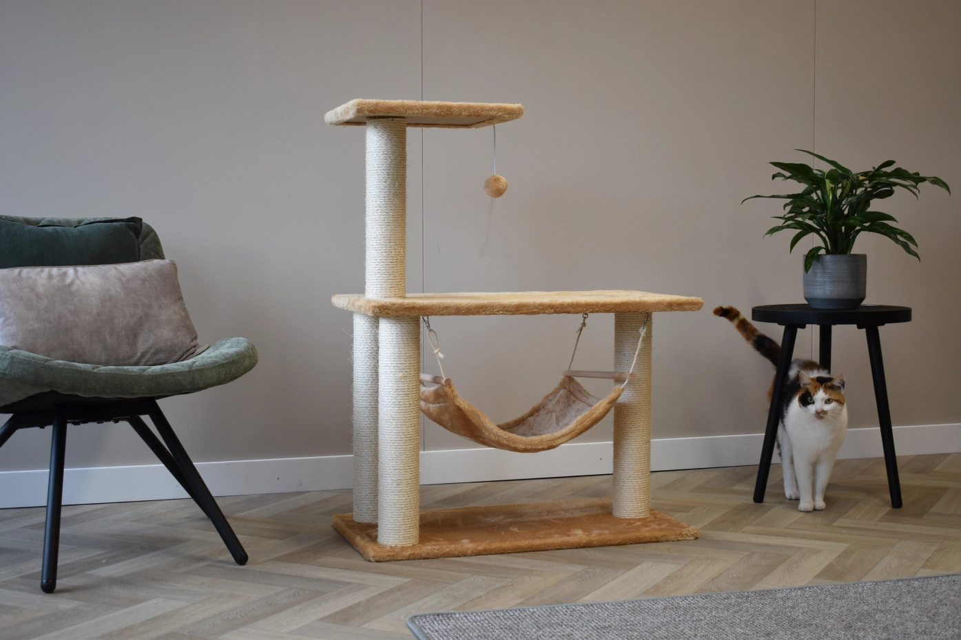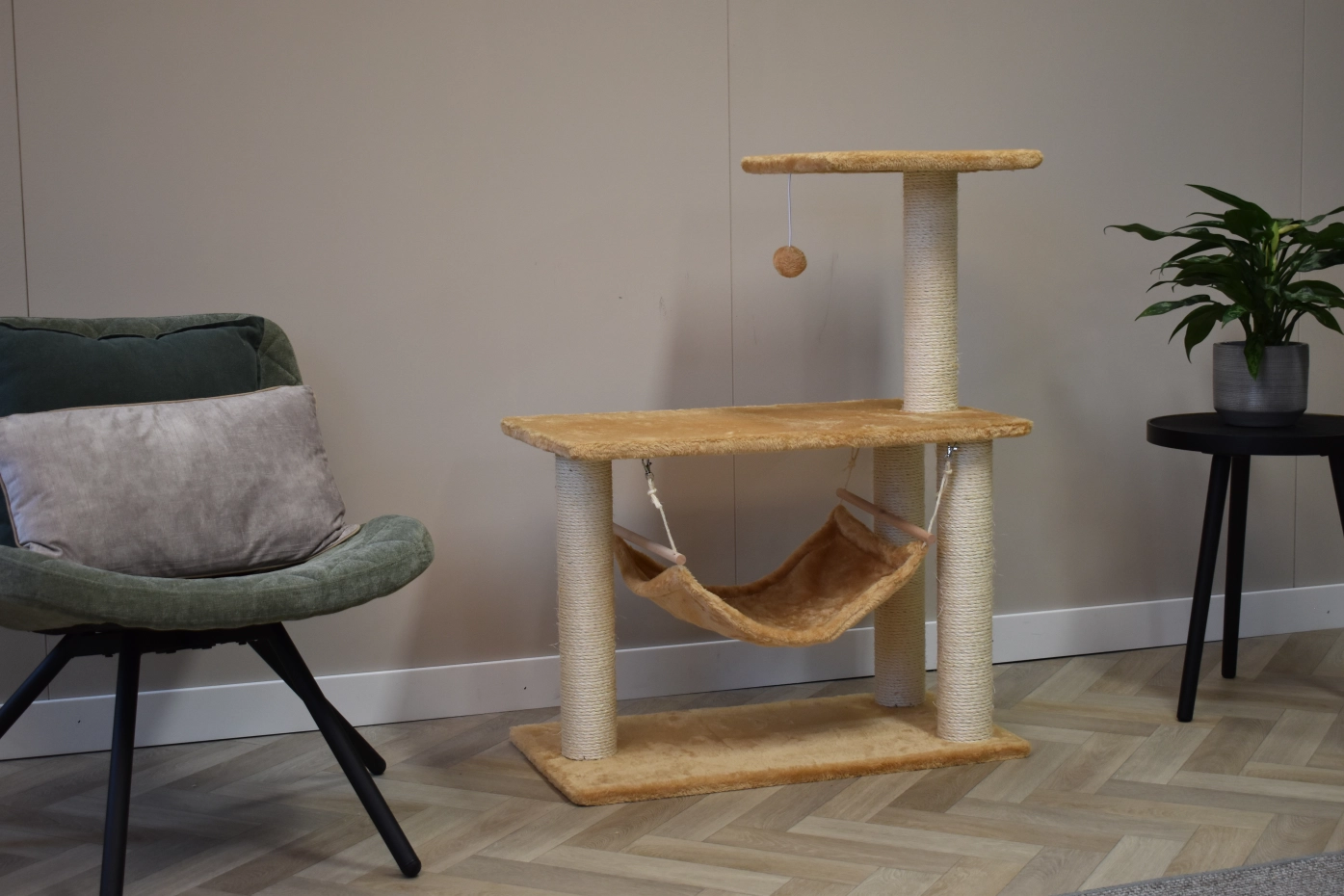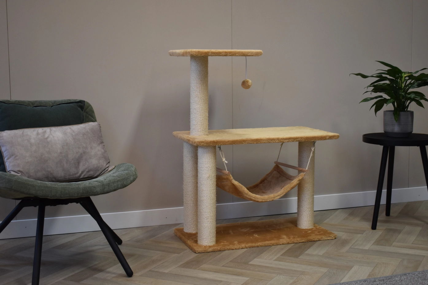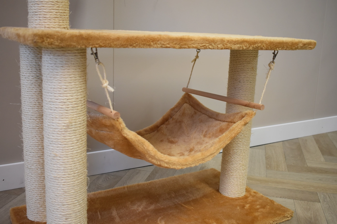 Le poteau à gratter Krusty offre beaucoup de plaisir pour vos chats. Le poteau a une plate-forme du couchage, un hamoc et un petite boule. Le poteau est approprié pour chats de petite à moyenne taille.