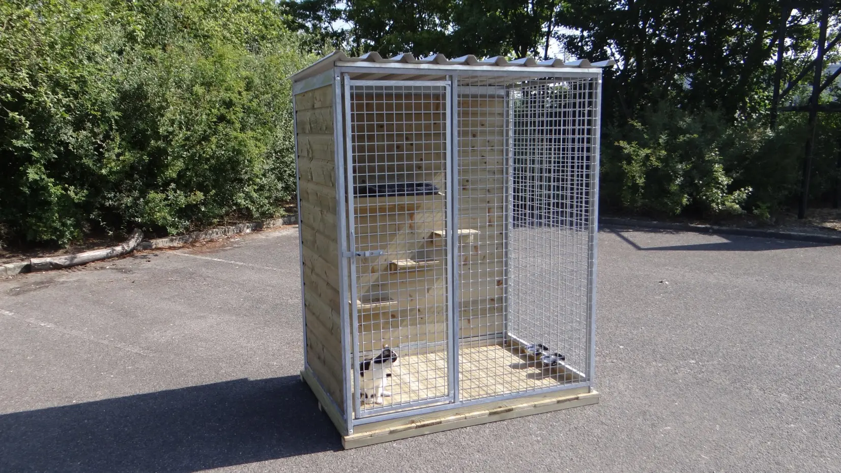 - Les murs en bois protÚgent du vent, de la pluie et du soleil. Cela crée un meilleur climat au chenil, tout au long de l'année.