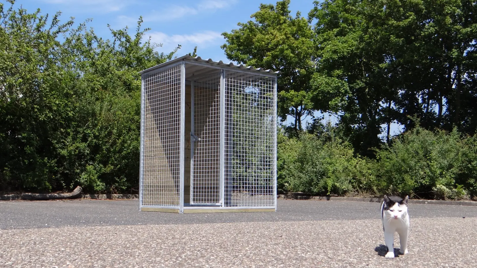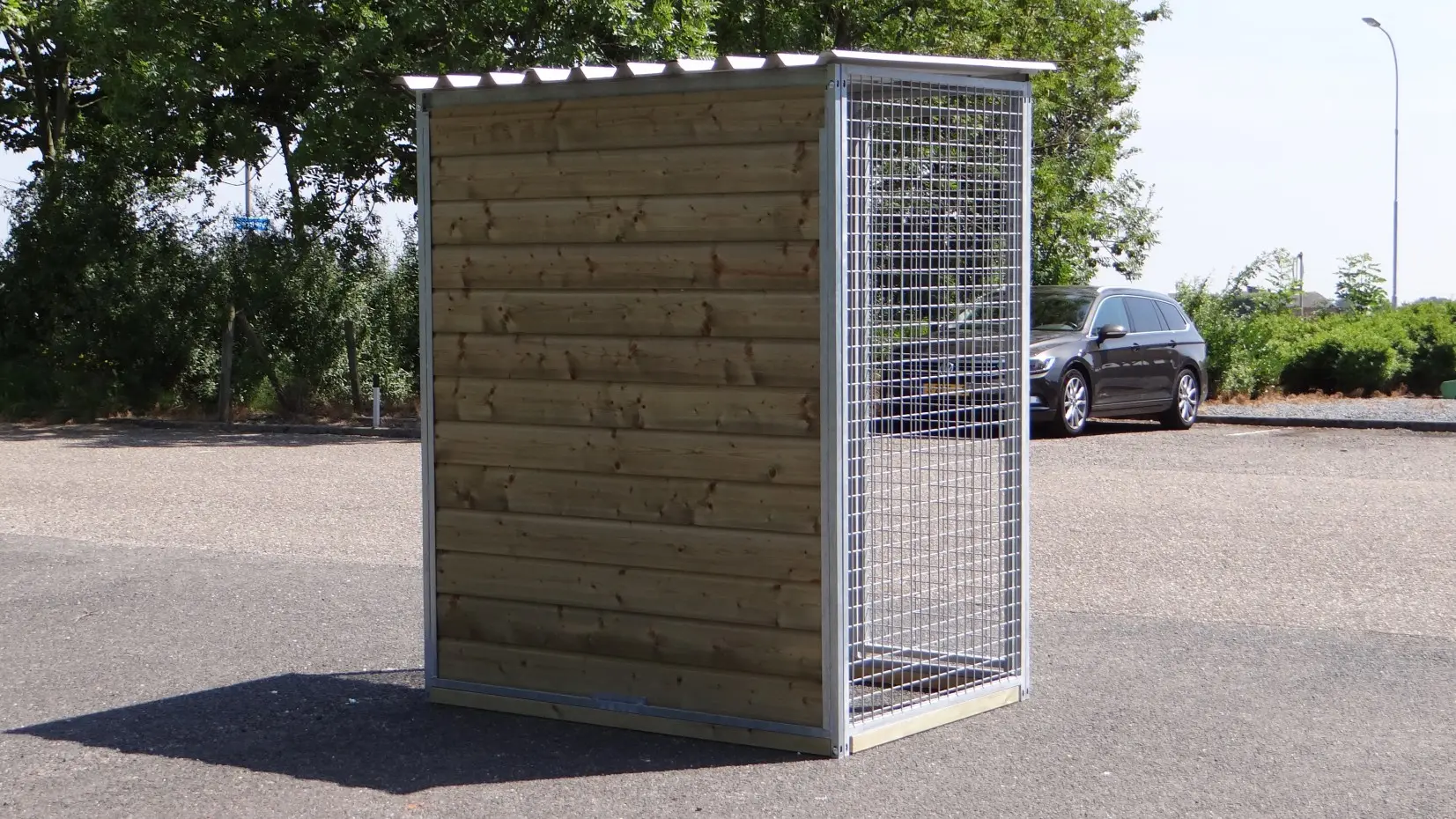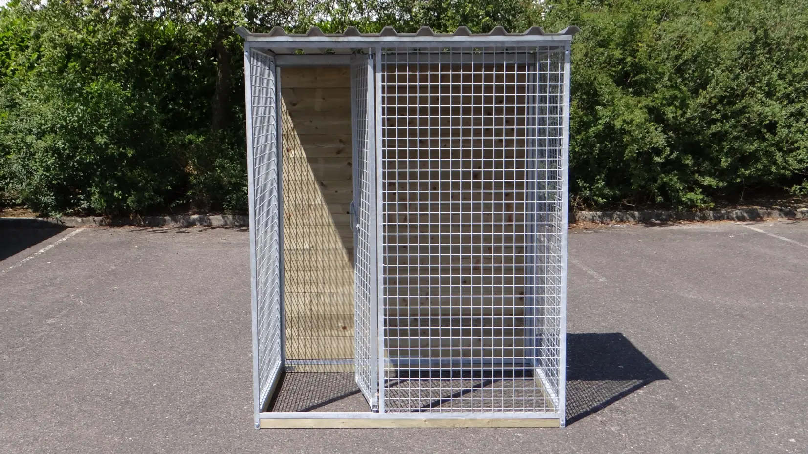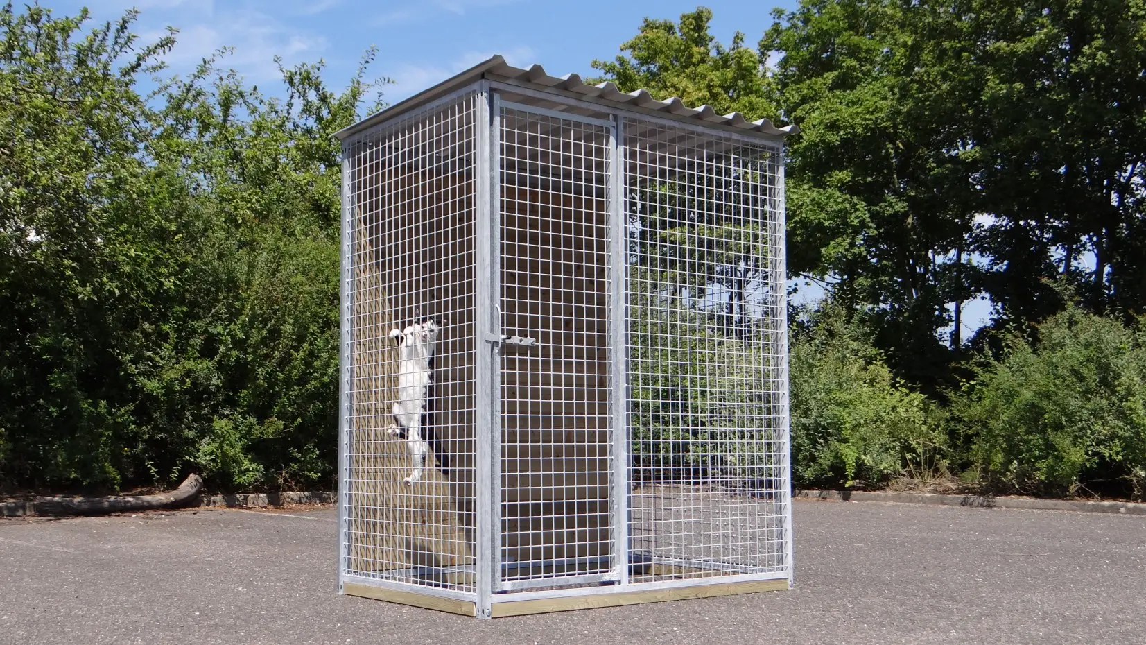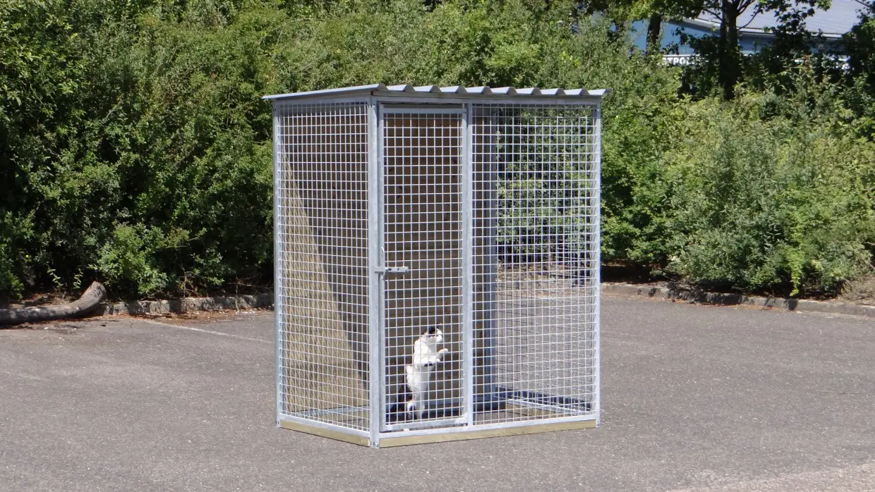 - La porte du chenil est standard sur le côté gauche, s'ouvre vers l'intérieur et peut être cadenassée