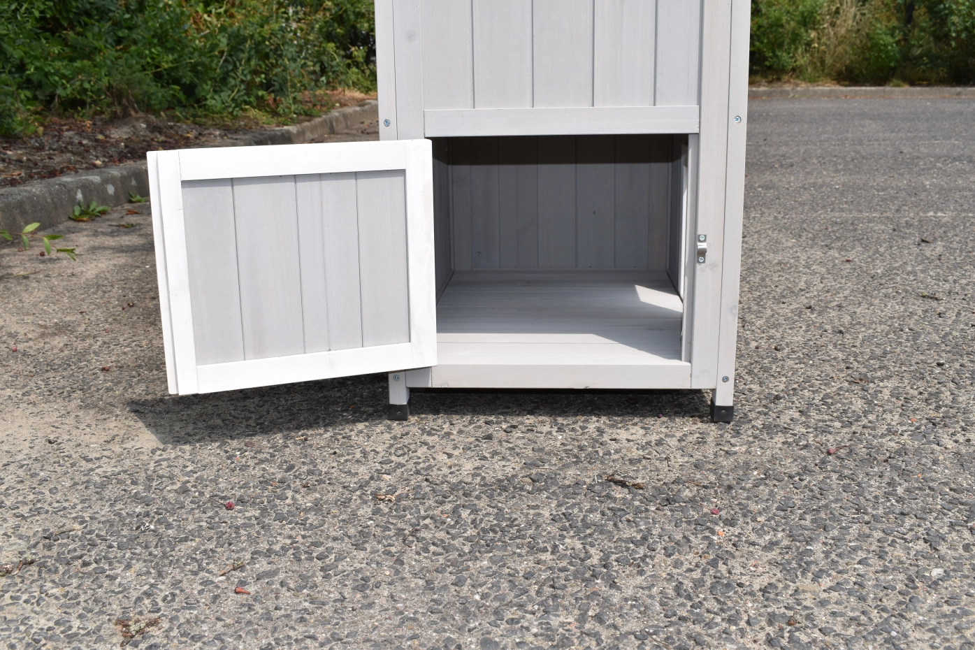 Niche pour chat Cathy est un bel niche avec 2 étages, ce qui permet de réduire l'encombrement du clapier. Au premier étage, votre chat peut se blottir au soleil. Le clapier est approprié pour l'usage intérieur et extérieur.