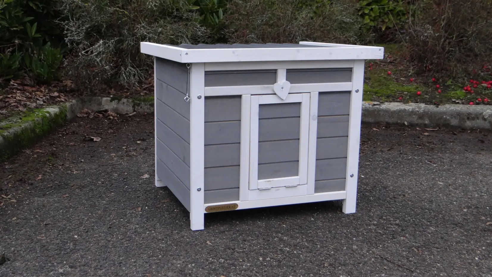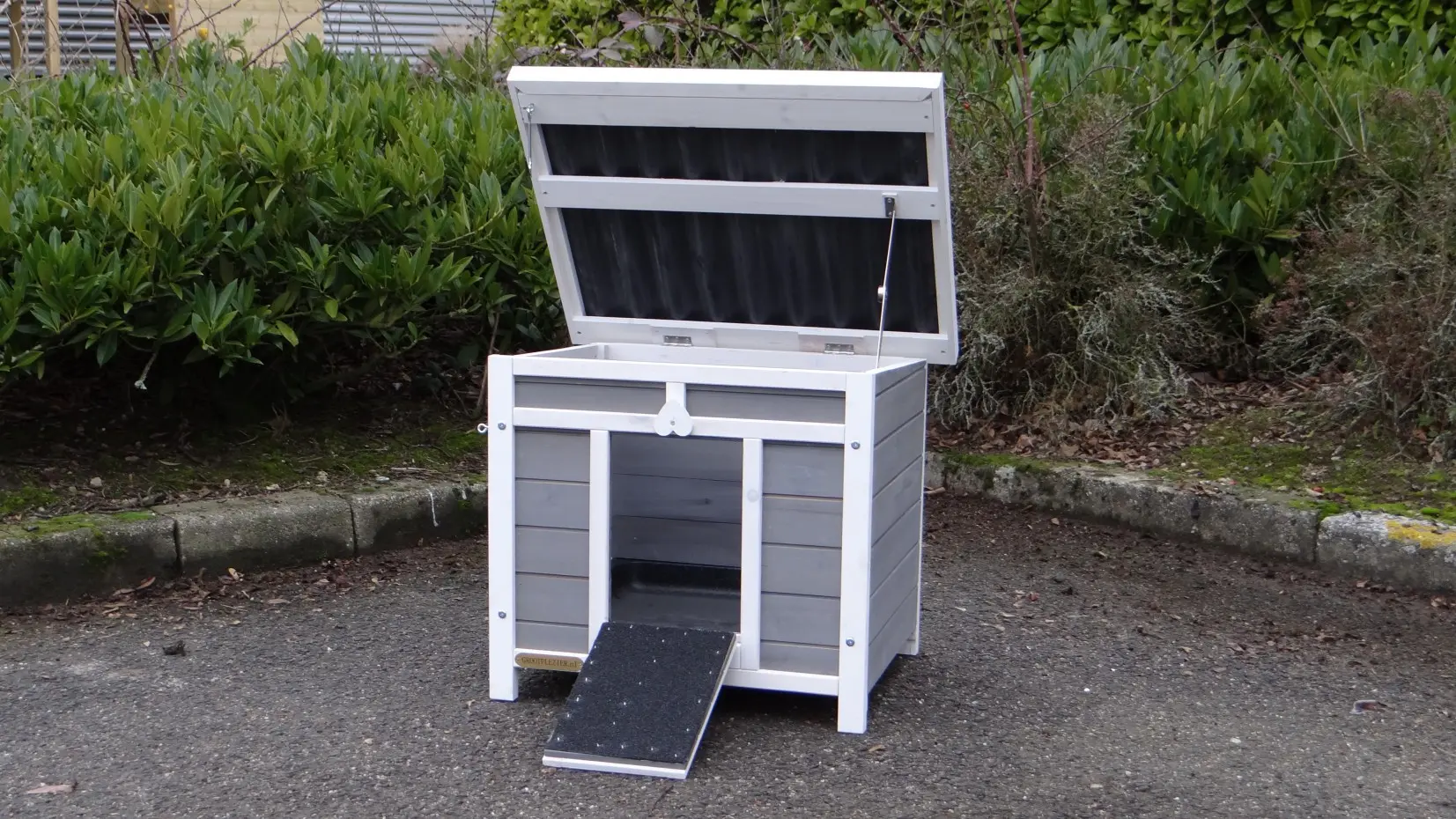 Niche pour chien Little White est un bel place pour votre chat. La niche a un toit articulé et un tiroir amovible, pour un nettoyage facile. La niche peut être placée dans un enclos où dans le jardin.