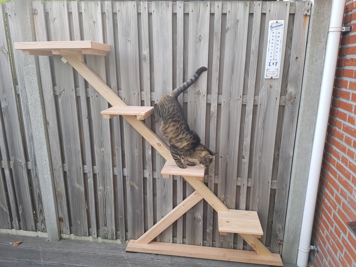 Un poteau d'escalade unique pour le jardin, ou dans un enclos extérieur pour chats. Ce poteau d'escalade pour chat offre une belle vue à votre chat dans le jardin. Livré en kit, vis incluses. Après assemblage, il s'agit d'une unité unique qui peut être facilement fixée à une clôture ou à un mur (chevilles non incluses !) avec deux coins. Votre chat appréciera certainement cela !