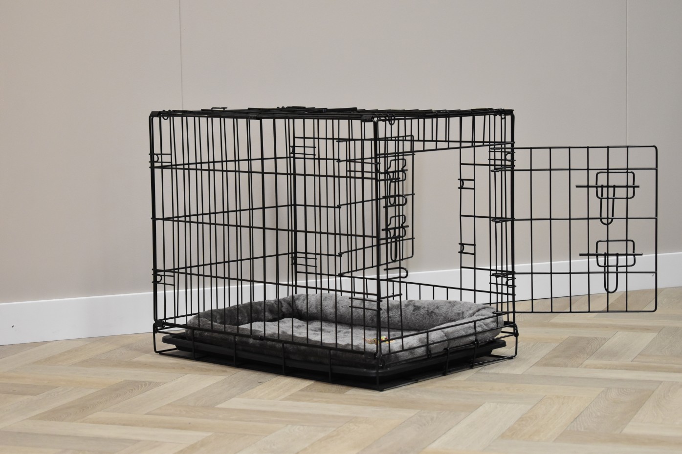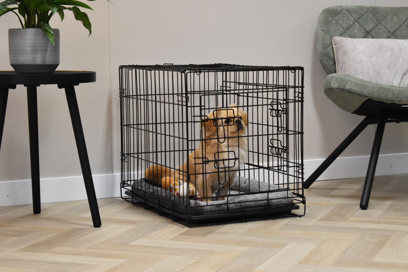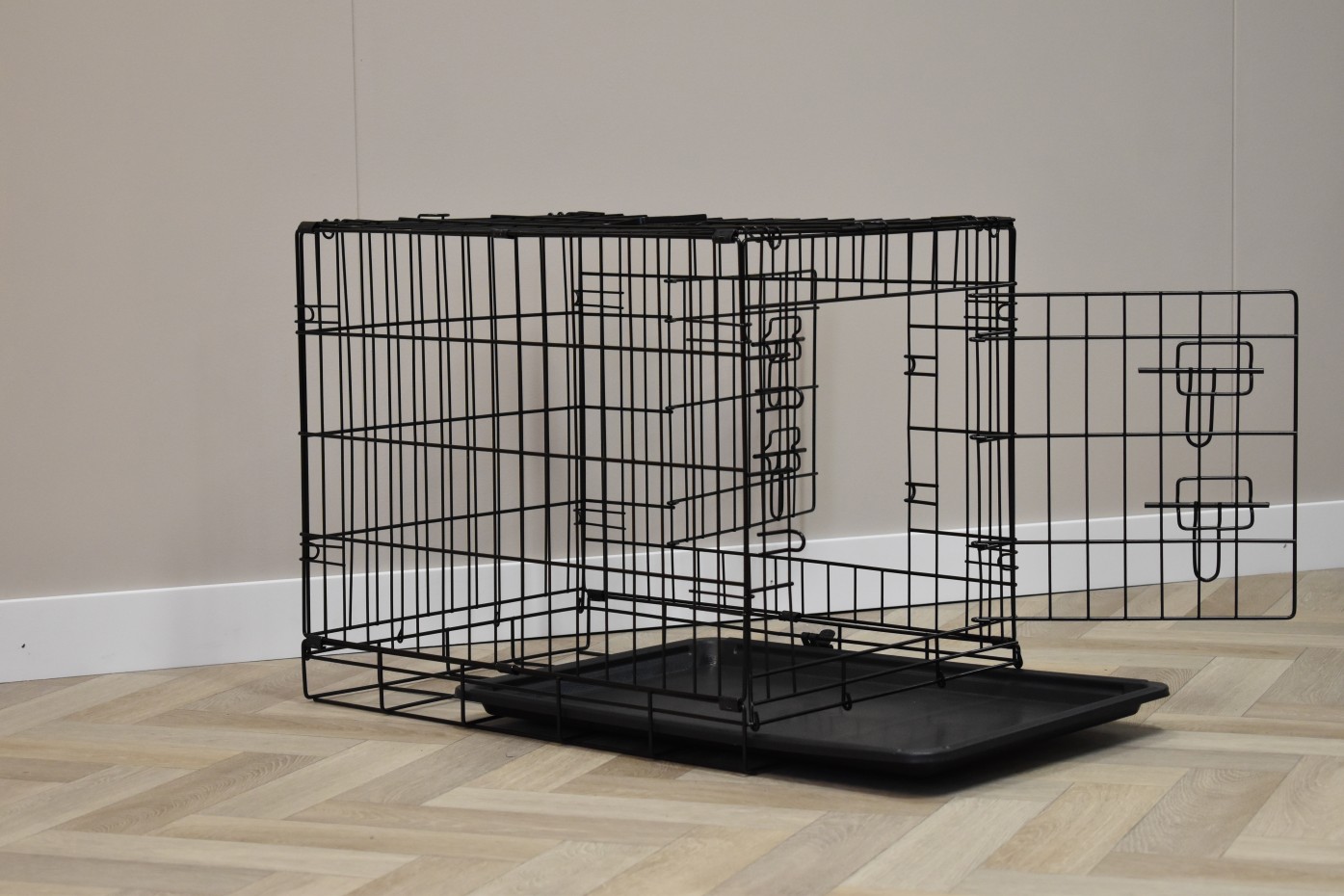 La cage pour chien Profit a les dimensions 122x74x80cm (LxlxH). La cage a 2 portes avec fermetures. La cage plíable a un bac en plastique, ce qui est facile à nettoyer. Convient comme cage pour un chien plus petit comme le Boomer, le Cavalier King Charles Spaniel, le Pomeranian, le Jack Russell, le Maltais, le Pékinois, le Teckel, le West Highland White Terrier et le Yorkshire Terrier. La cage noire Profit est disponible en trois tailles: [63cm] / 92cm / 122cm.