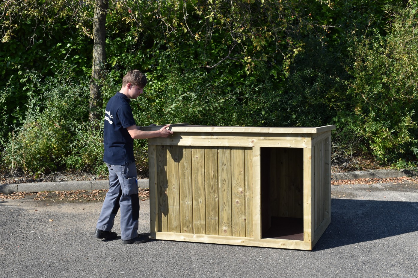 Niche pour chien Block Extra Large est fabriquée en bois d'épicéa impregné. La niche est très solidement construit et donc bien adapté aux chiens de grande taille tels que le Boerboel, le Grand Danois, le Terre-Neuve, le Saint Bernard, le Bouvier Bernois, le Dogue du Tibet.