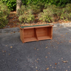 Le bois utilisé pour le loft est un produit naturel unique qu'a été produit dans le pays d'origine, après une sélection rigoureuse, dans une manière traditionelle. C'est caractéristique et unique à tous égards. Ce produit en bois a été un traitement manuel. Aucune pièce de bois ne possède la même forme, la même structure ou la même couleur, de sorte que les nuances de couleur sont inévitables, même dans un morceau de bois. Les fissures dues au vent, les craquelures, les imperfections et la présence de gros et de petits noeuds témoignent de leur origine et de leurs années de croissance. Les bosses sont généralement mises à jour manuellement avec du bois. Grâce à leur utilisation et à l’influence de la lumière, les nouveaux maisons pour animaux auront une couleur plus chaude au fil du temps. Les différences de couleur au modèle d'exposition sont donc possibles. L'enclos pour animaux est munie d'un fini antitache dans les couleurs comme sur la photo. Vous devez encore décaper le bois pour éviter les moisissures et la pourriture. Vous pouvez facilement commander des taches directement.