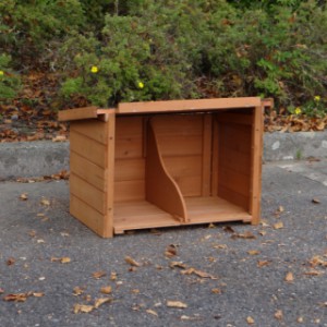 Le bois utilisé pour le loft est un produit naturel unique qu'a été produit dans le pays d'origine, après une sélection rigoureuse, dans une manière traditionelle. C'est caractéristique et unique à tous égards. Ce produit en bois a été un traitement manuel. Aucune pièce de bois ne possède la même forme, la même structure ou la même couleur, de sorte que les nuances de couleur sont inévitables, même dans un morceau de bois. Les fissures dues au vent, les craquelures, les imperfections et la présence de gros et de petits noeuds témoignent de leur origine et de leurs années de croissance. Les bosses sont généralement mises à jour manuellement avec du bois. Grâce à leur utilisation et à l’influence de la lumière, les nouveaux maisons pour animaux auront une couleur plus chaude au fil du temps. Les différences de couleur au modèle d'exposition sont donc possibles. L'enclos pour animaux est munie d'un fini antitache dans les couleurs comme sur la photo. Vous devez encore décaper le bois pour éviter les moisissures et la pourriture. Vous pouvez facilement commander des taches directement.