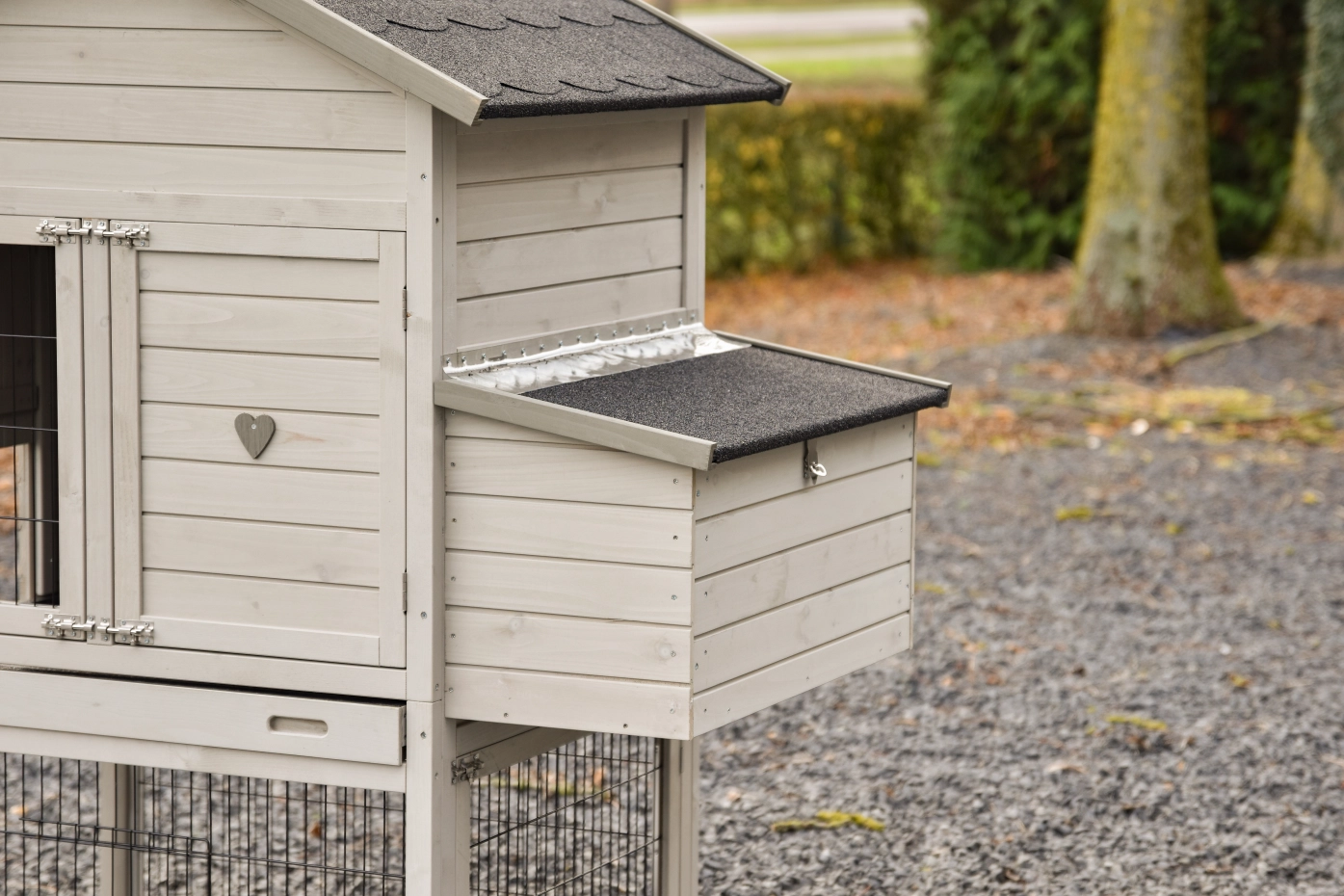 - Si ce n'est pas dans un endroit abrité, nous vous conseillons d'ancrer le clapier / poulailler
