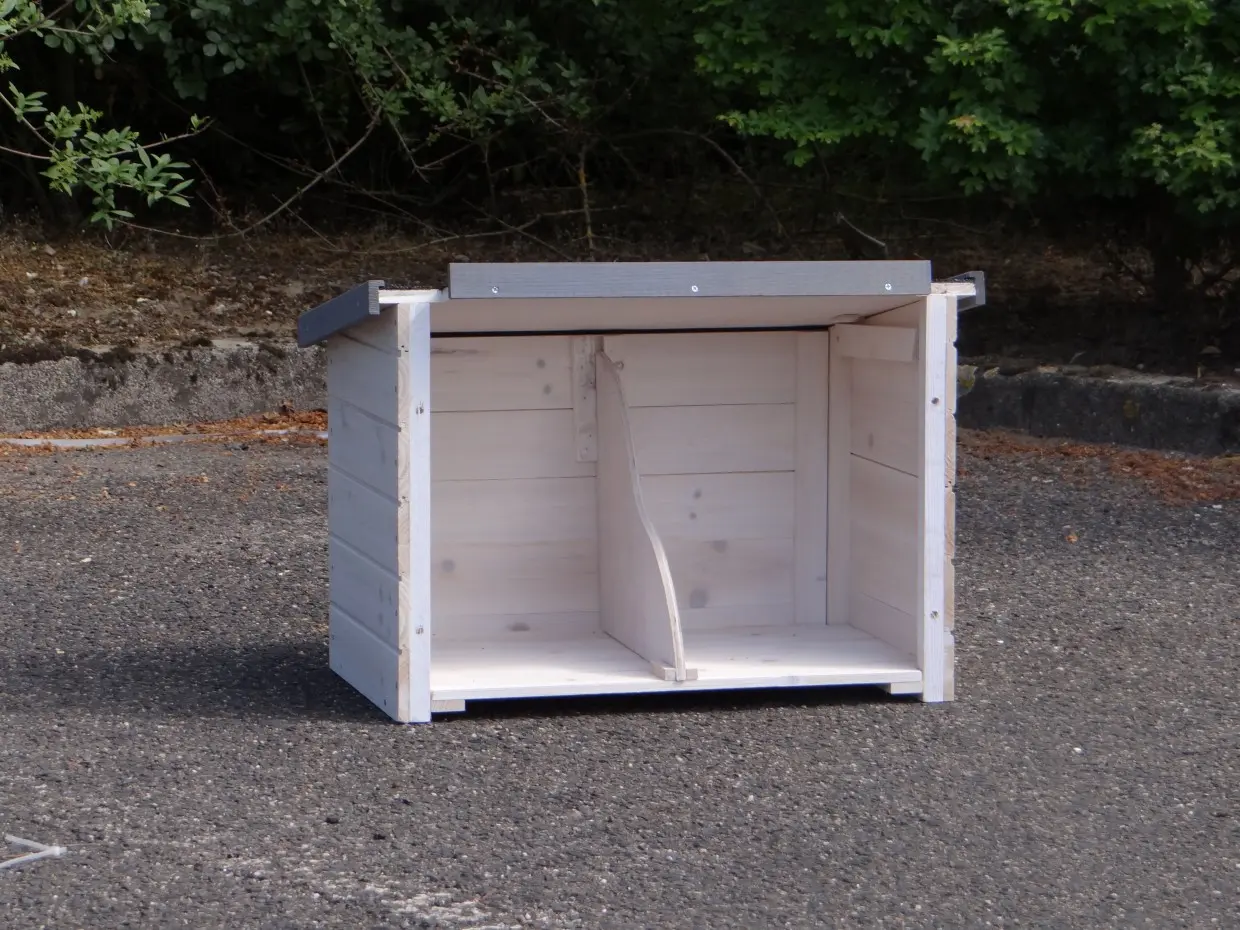 La pondoir Medium s’ajoute facilement à de nombreux poulaillers. Il est livré avec vis, boulons, écrous et charnières. Il dispose d’un toit ouvrant et d’une cloison, convenant à diverses races de poules. Ses dimensions extérieures maximales sont de 57x34x39 cm (L x P x H).