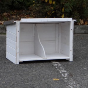 Le bois utilisé pour le loft est un produit naturel unique qu'a été produit dans le pays d'origine, après une sélection rigoureuse, dans une manière traditionelle. C'est caractéristique et unique à tous égards. Ce produit en bois a été un traitement manuel. Aucune pièce de bois ne possède la même forme, la même structure ou la même couleur, de sorte que les nuances de couleur sont inévitables, même dans un morceau de bois. Les fissures dues au vent, les craquelures, les imperfections et la présence de gros et de petits noeuds témoignent de leur origine et de leurs années de croissance. Les bosses sont généralement mises à jour manuellement avec du bois. Grâce à leur utilisation et à l’influence de la lumière, les nouveaux maisons pour animaux auront une couleur plus chaude au fil du temps. Les différences de couleur au modèle d'exposition sont donc possibles. L'enclos pour animaux est munie d'un fini antitache dans les couleurs comme sur la photo. Vous devez encore décaper le bois pour éviter les moisissures et la pourriture. Vous pouvez facilement commander des taches directement.