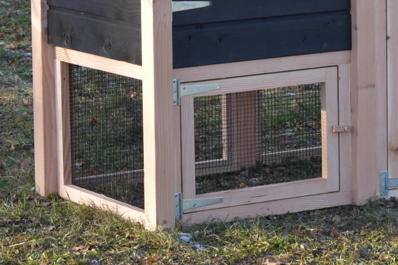 Les panneaux des maille existe de 3 panneaux, dont 1 pannea avec porte. Si vous souhaitez construire une sortie sur la meule de foin Rosa, Rosy, Rosanne et Rosalynn, vous pouvez tout simplement la commander en même temps. Vous pourrez les commander plus tard et les monter dans la botte de foin.