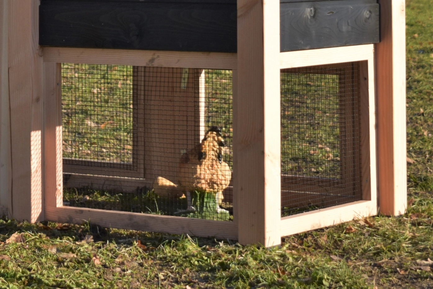 - En bois de Douglas, avec des cadres de 68x44mm, des planches avec un épaisseur de 18mm. Même sans traitement du bois, le bois est durable pour 15 ans, mais le bois se devient gris vite si vous n'utilisez pas des huile pour le Douglas.