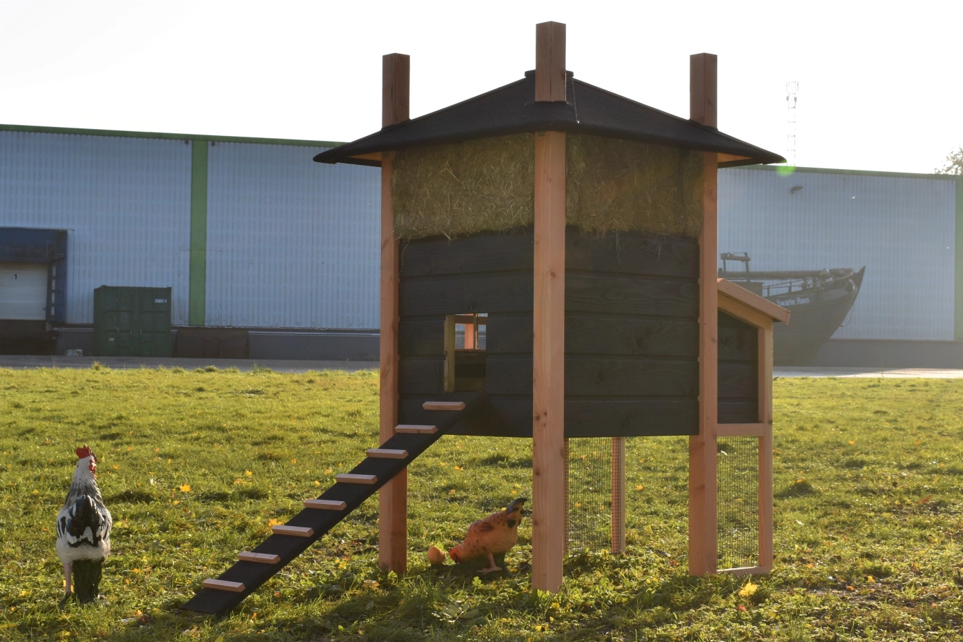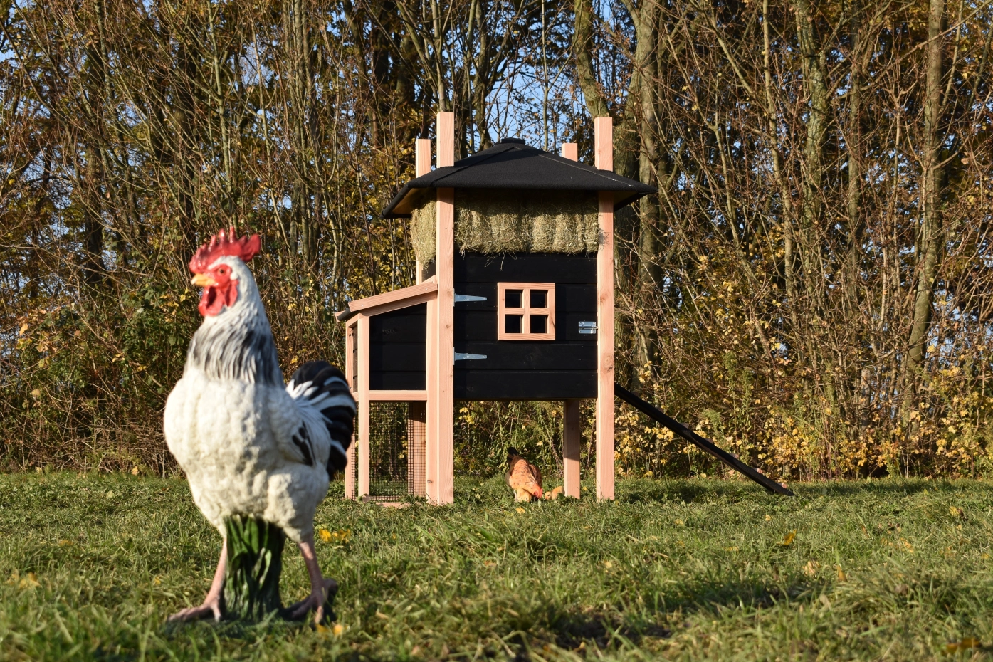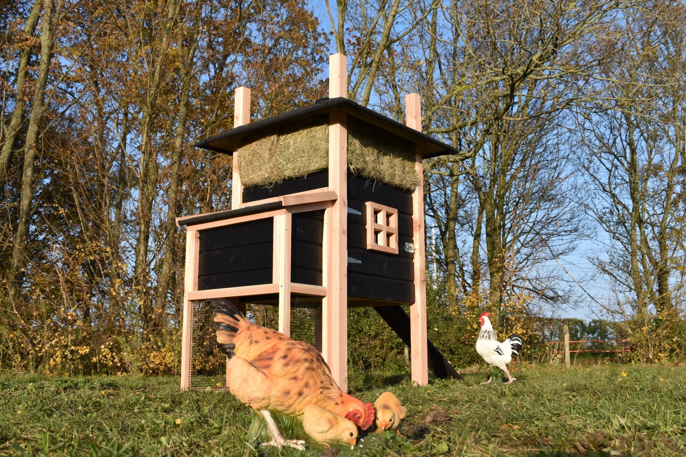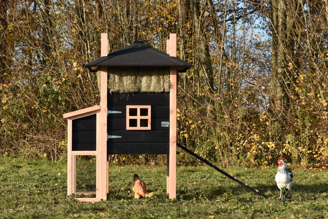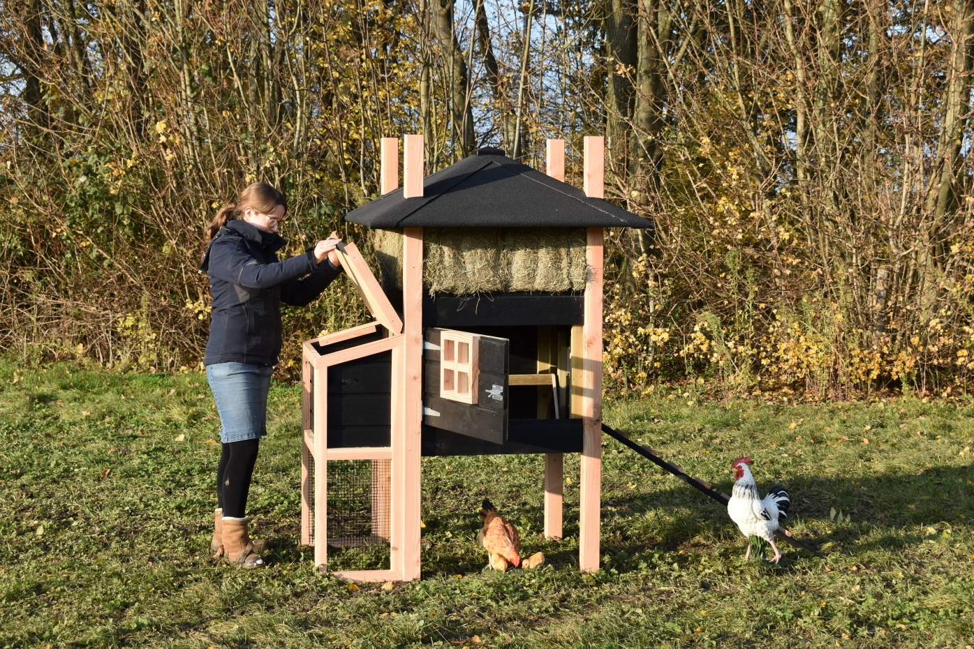 Poulailler botte de foin Rosalynn est étendue avec une pondoir. Le botte de foin est un clapier pratique. A cause du toit articulé vous pouvez ramasser les oeufs facilement. La porte avec le fenêtre a les dimensions 58x40cm. Le poulailler est approprié pour 3 à 5 poules. Le clapier est un achat pour votre jardin!