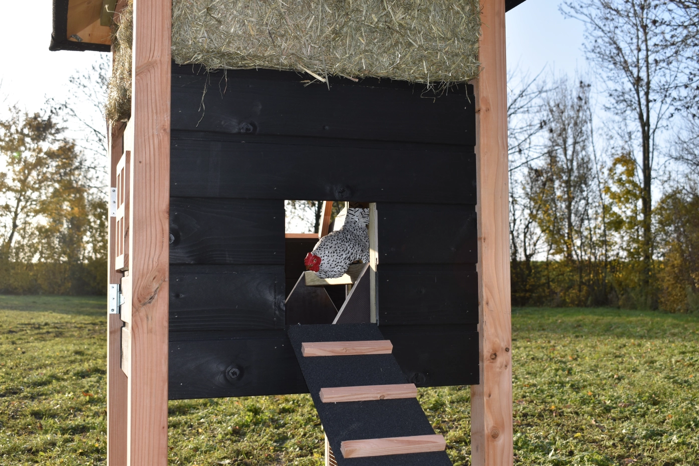 Nous indiquons pour combien de poules l'abri de nuit est adapté. Le nombre mentionné s'applique par taille de poule et se répartit comme suit :