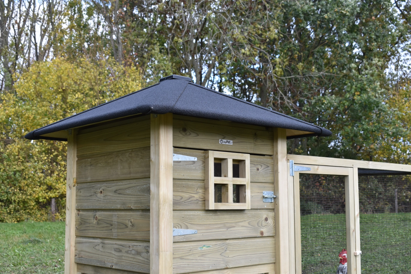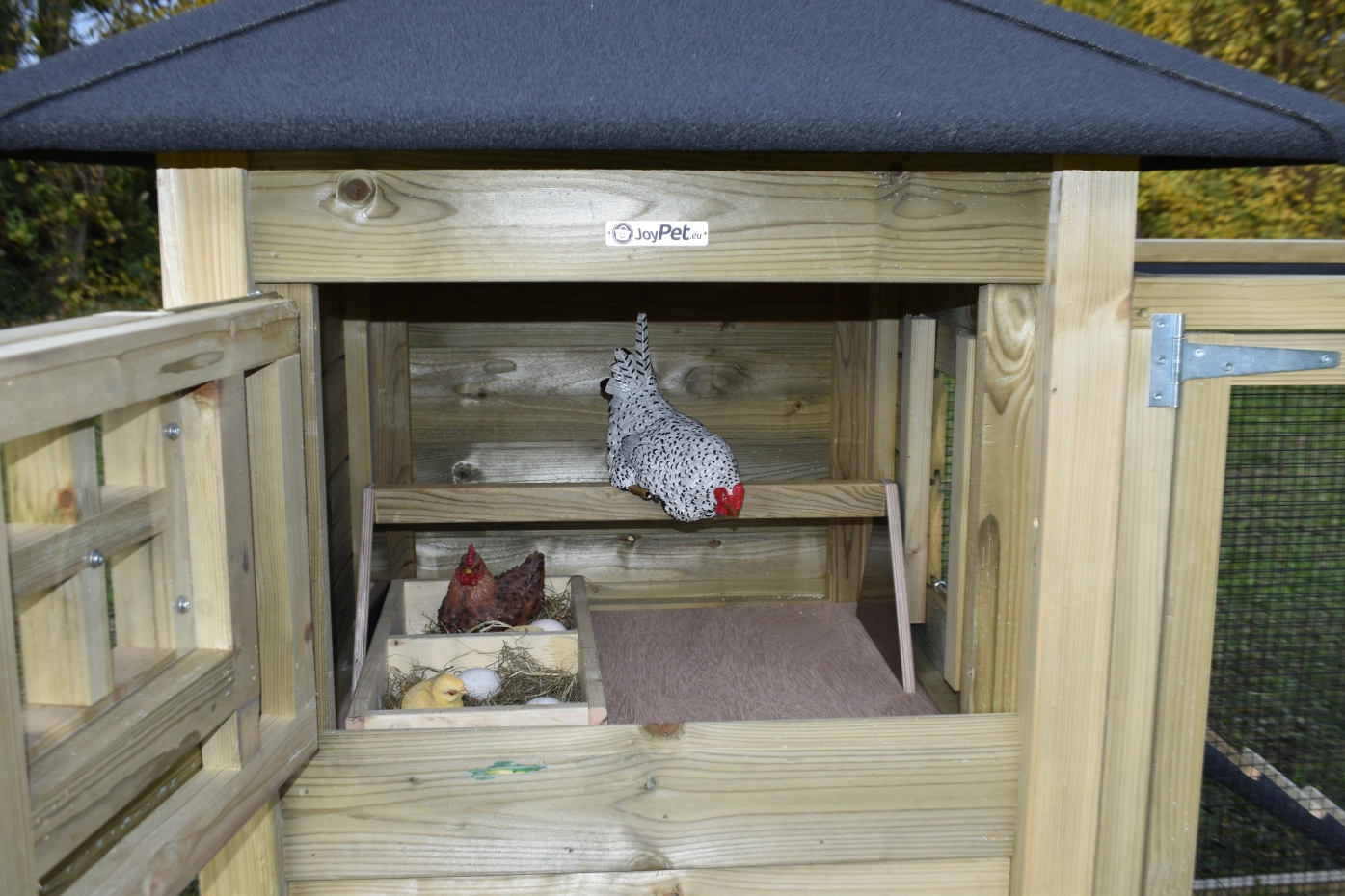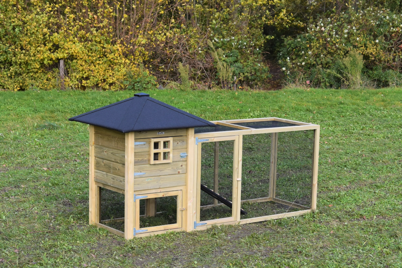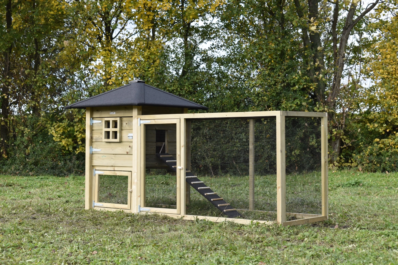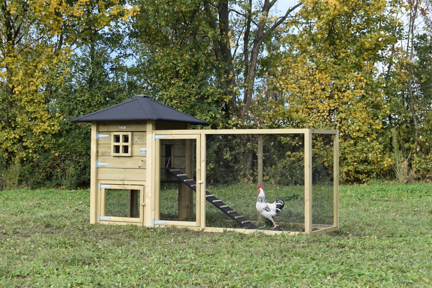 Le poulailler Rosy est étendue avec un enclos additive. Le grand enclos offre une belle vue sur vos poules. A cause de la grande porte vous pouvez nettoyer le clapier facilement. Un bel clapier pour un bon prix!