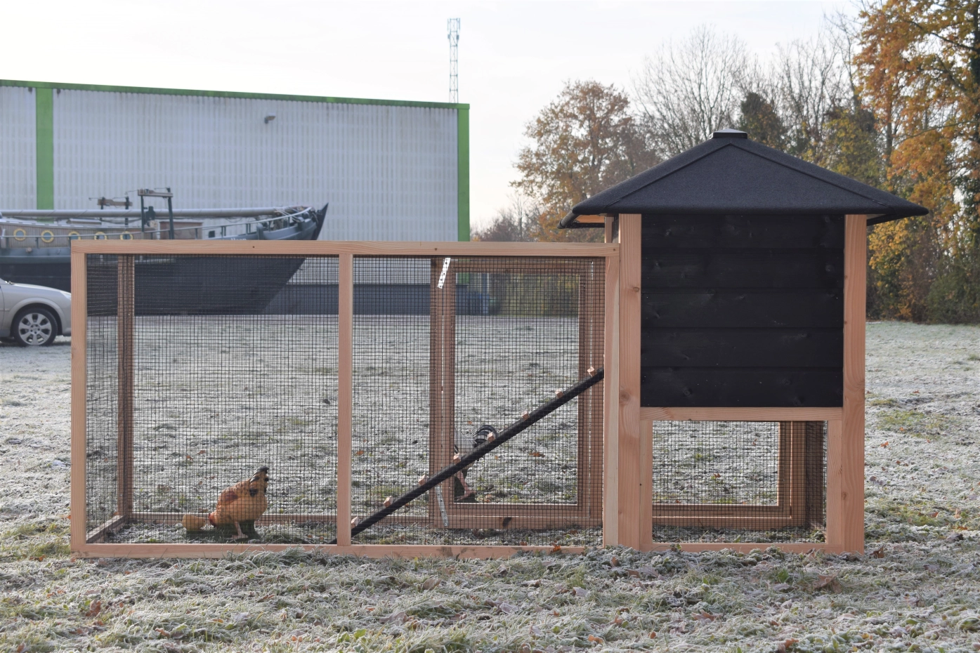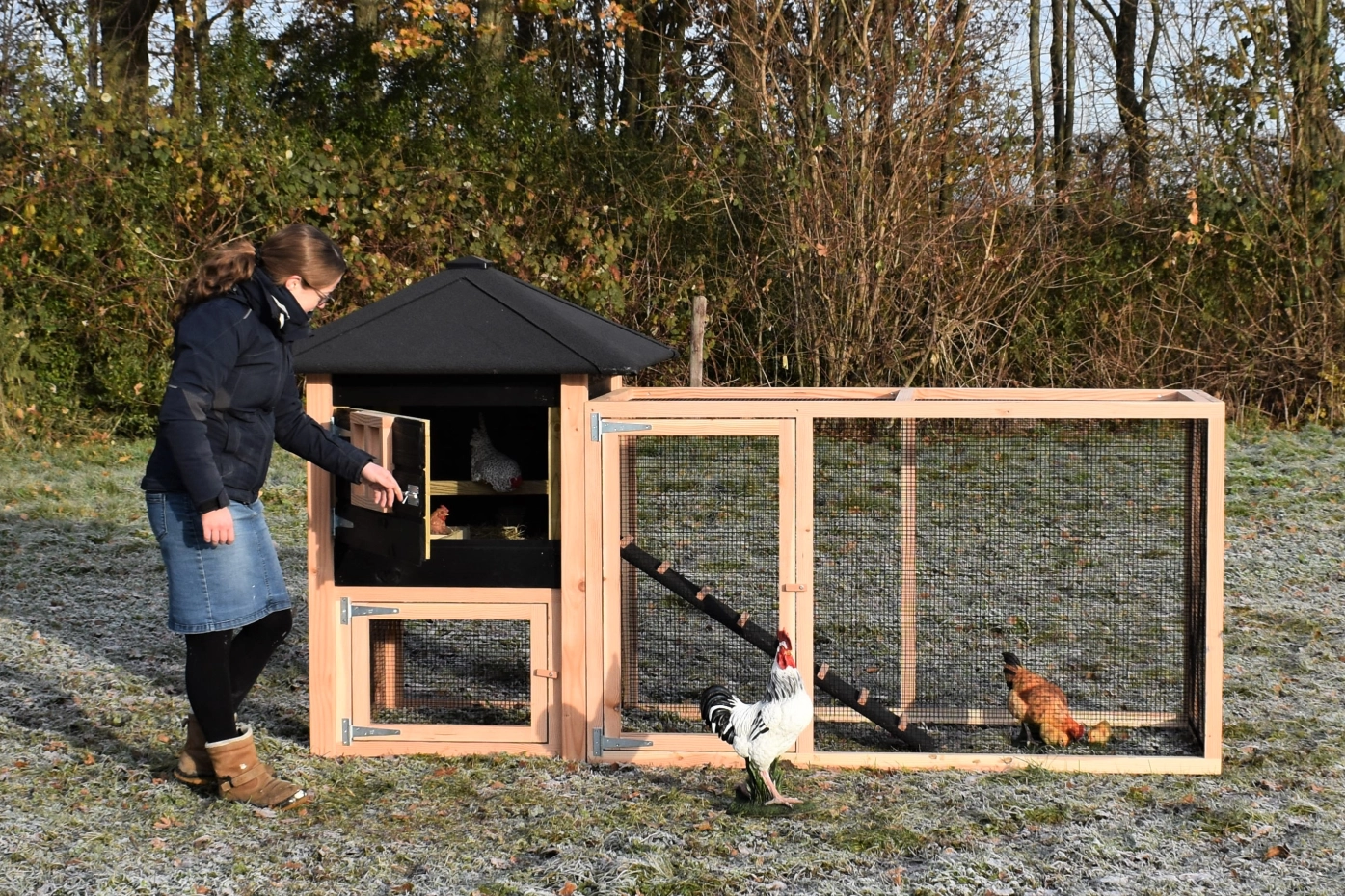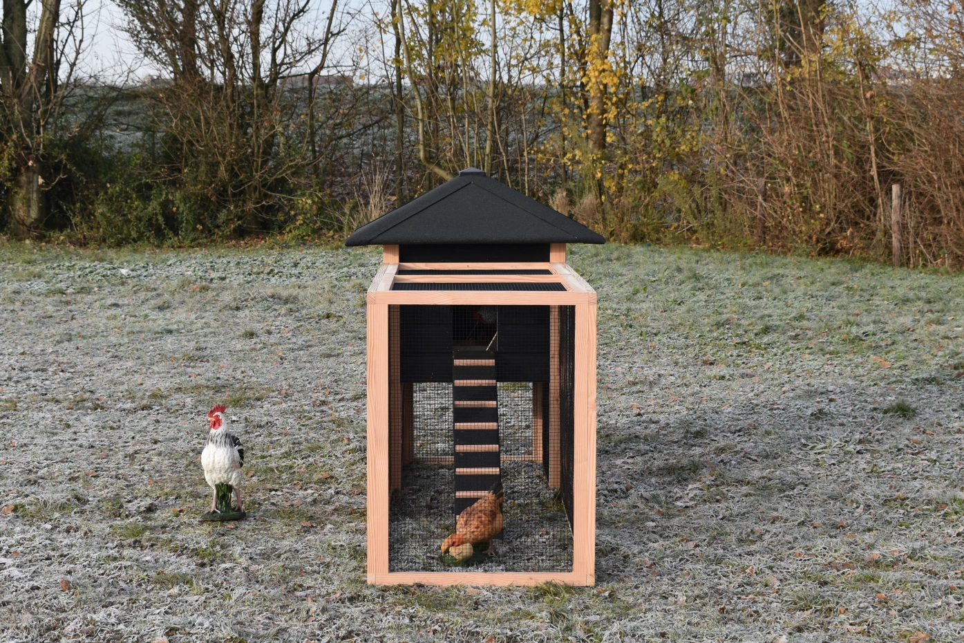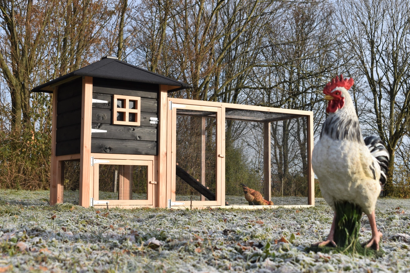 Le poulailler Rosy est étendue avec un enclos additive. Le grand enclos offre une belle vue sur vos poules. A cause de la grande porte vous pouvez nettoyer le clapier facilement. Un bel clapier pour un bon prix!