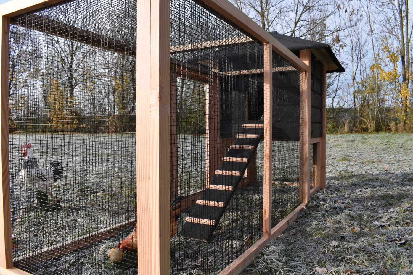 - Le poulailler est équipé de pieds en plastique