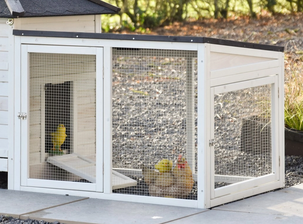 L'enclos d'extension Ambiance Large est spécifiquement adapté à le clapier Ambiance Large et peut également être bien combiné avec diverses installations pour animaux. L'enclos d'extension est doté d'un toit en bardeaux. Ce toit est incliné vers l'arrière. L'enclos d'extension peut être agrandi indéfiniment, mais la porte latérale doit être retirée.