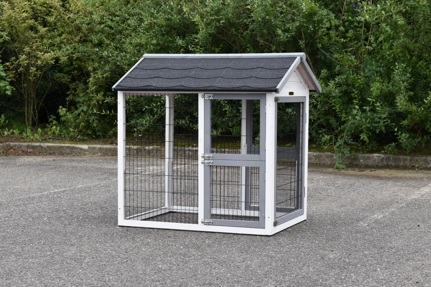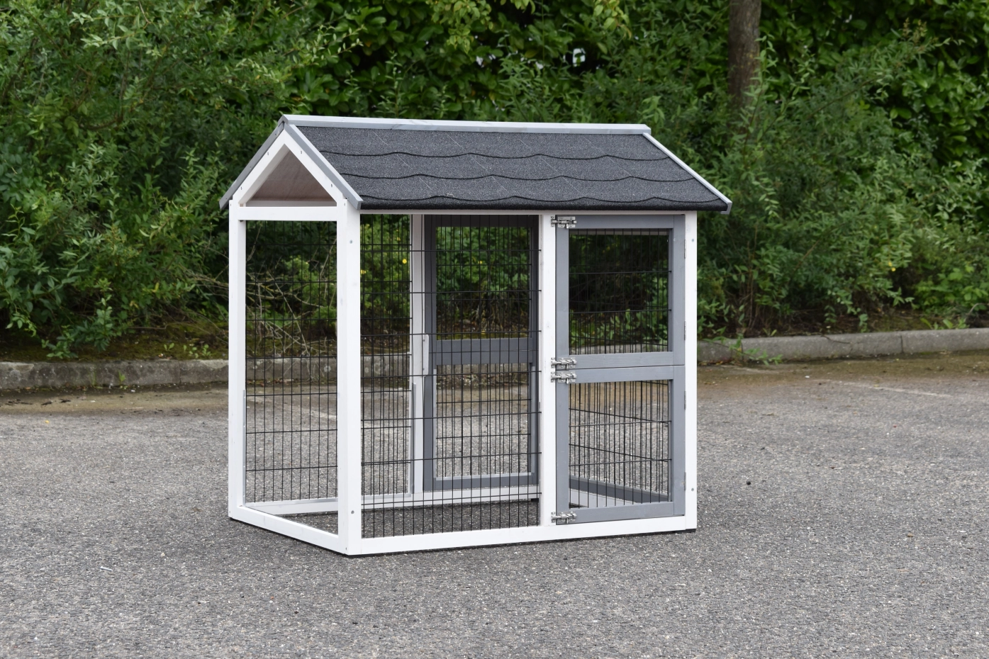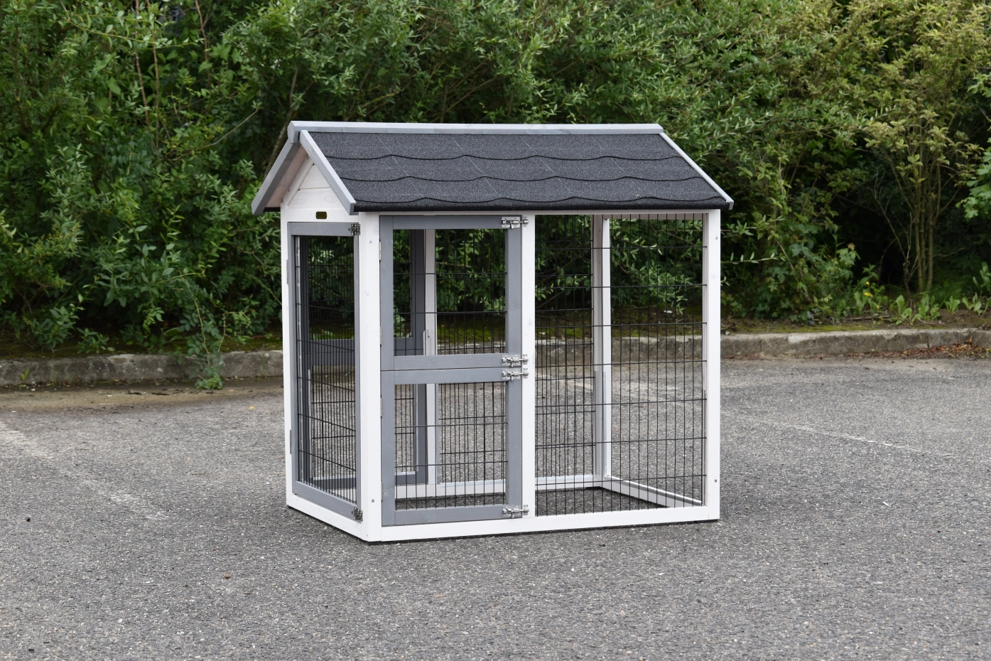 Il est conseillé de traiter périodiquement les charnières et les serrures avec un spray en silicone ou un spray pour serrures pour éviter la rouille et la corrosion. Si l'animal n'est pas dans un endroit abrité, nous vous conseillons d'ancrer l'enclos.