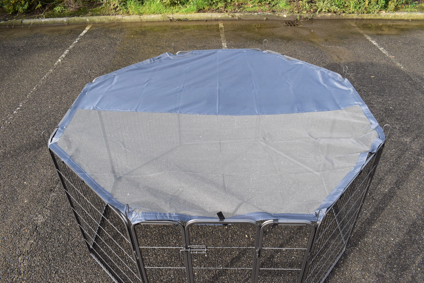 Le pare-soleil / filet de protection pour l'enclos Octa offre une protection simple mais efficace contre la lumière du soleil dans l'enclos et empêche les lapins ou les chiots de sauter hors de l'enclos. Ce pare-soleil à 8 côtés se fixe facilement à l’aide d’une bande auto-agrippante. Le filet de protection ne peut être utilisé que lorsque l'enclos est configuré en octogone.