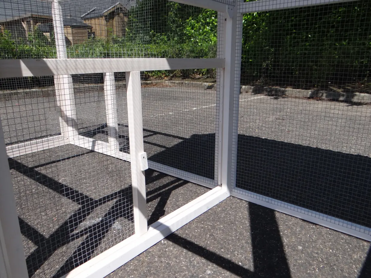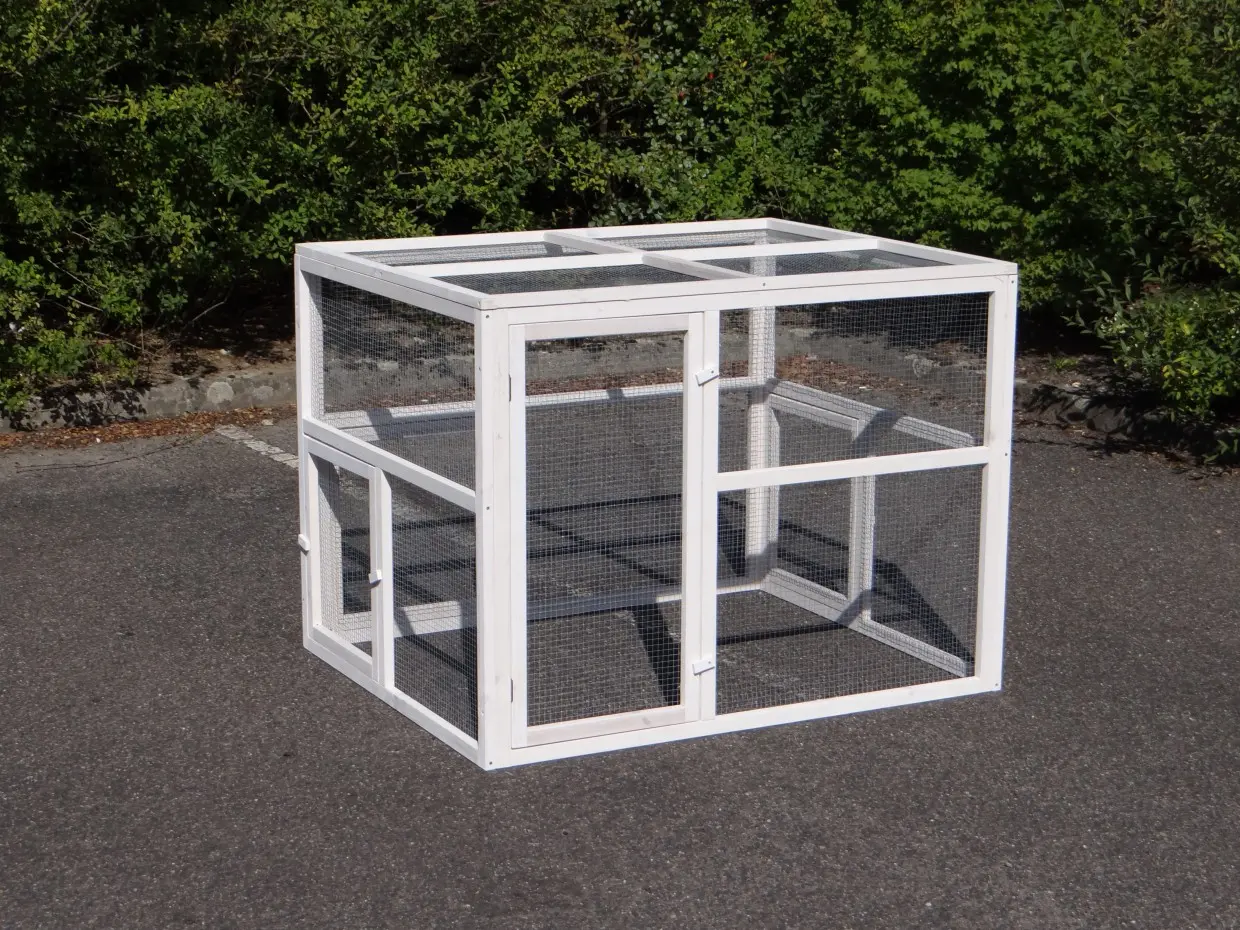 - Le toit d'enclos est équipé de maille (ca. 12x12mm)