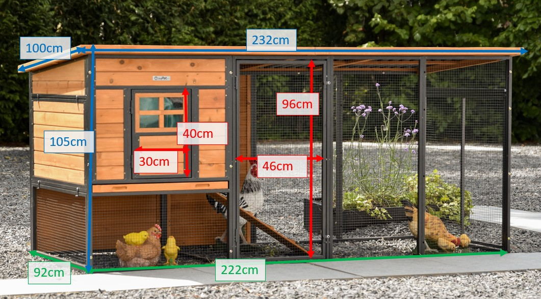 Le poulailler Judy est très spacieux et pratique. Il offre un habitat confortable pour vos poules et dispose d’un grand abri nocturne pour une protection supplémentaire. Avec un tiroir de nettoyage pratique et un grand enclos, il est parfait pour 4 grandes poules ou jusqu’à 9 petites poules. Grâce à sa structure métallique, le poulailler Judy est très solide et stable.
