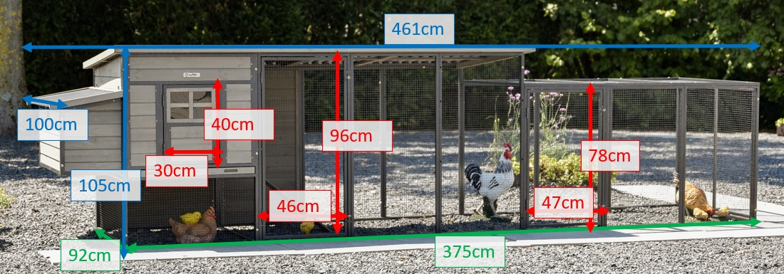 Avec un tiroir de nettoyage pratique, un nid de ponte spacieux et un enclos extra large, il est parfait pour 4 grandes poules ou jusqu’à 9 petites.