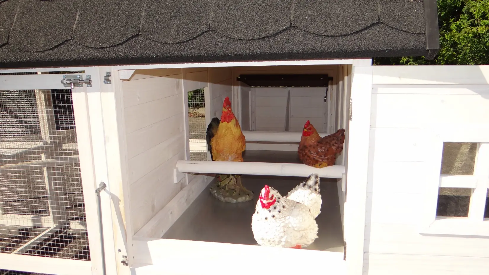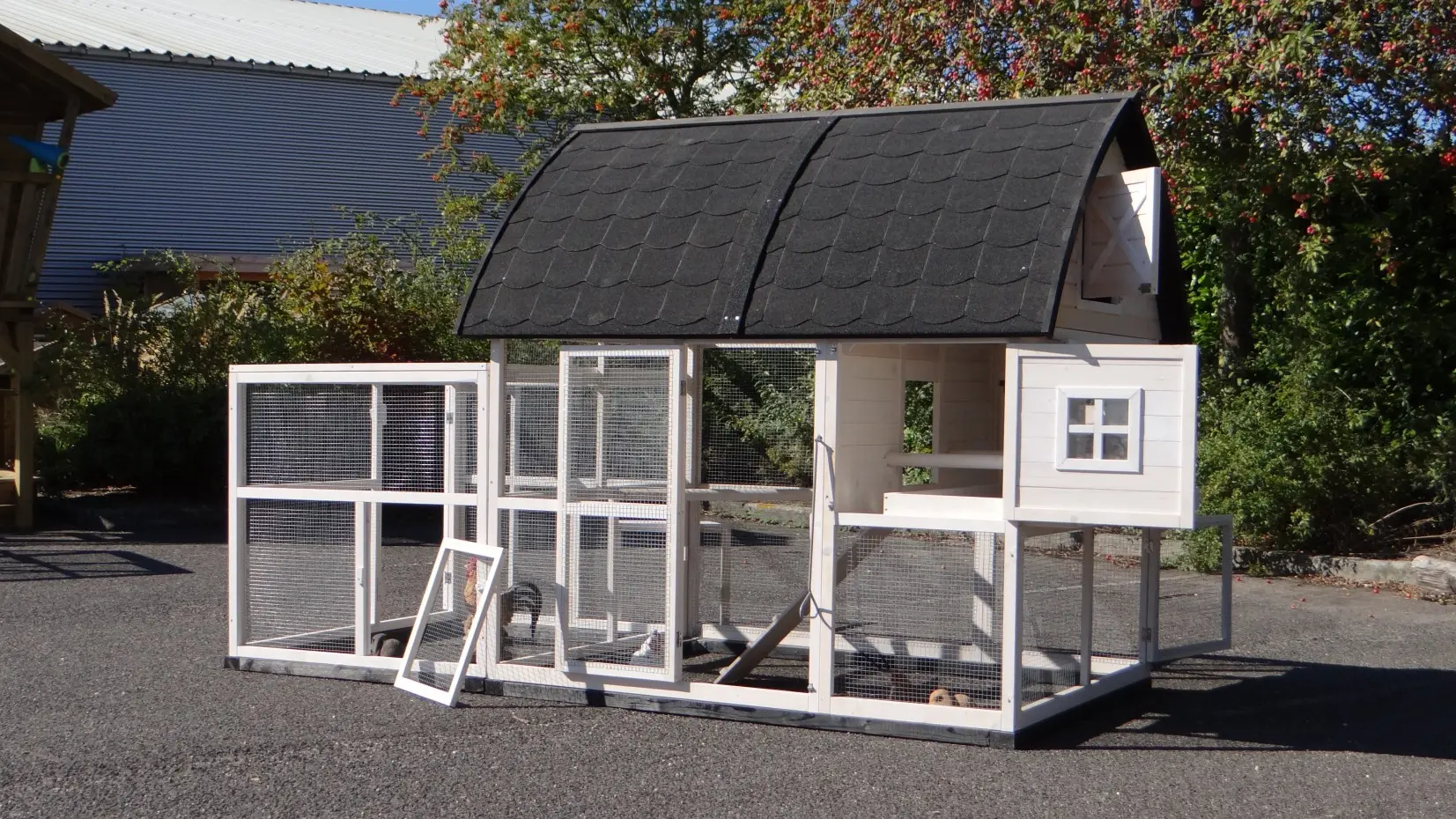 - Ce poulailler est équipé d'un nichoir
