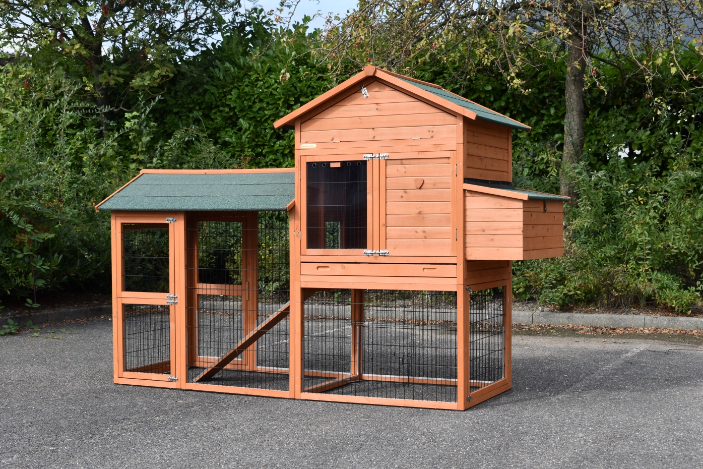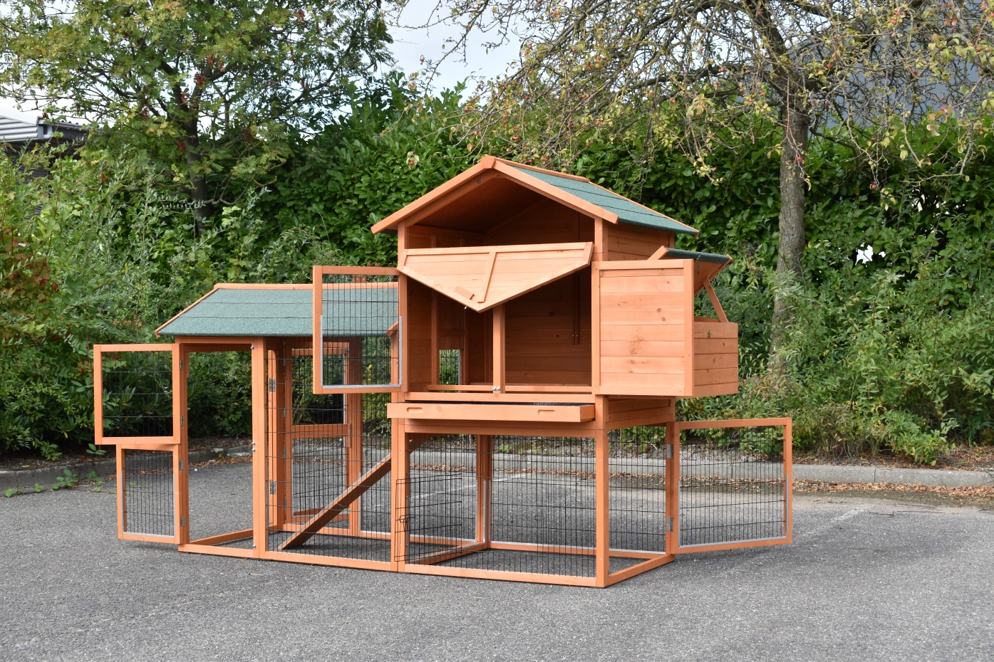 Le poulailler Prestige Large avec enclos latéral gauche et pondoir est un superbe abri pour vos poules. Ce grand poulailler est fini avec le plus grand soin et comprend plusieurs grandes portes, un espace de nuit spacieux avec perchoirs, un pondoir pratique et un vaste enclos.