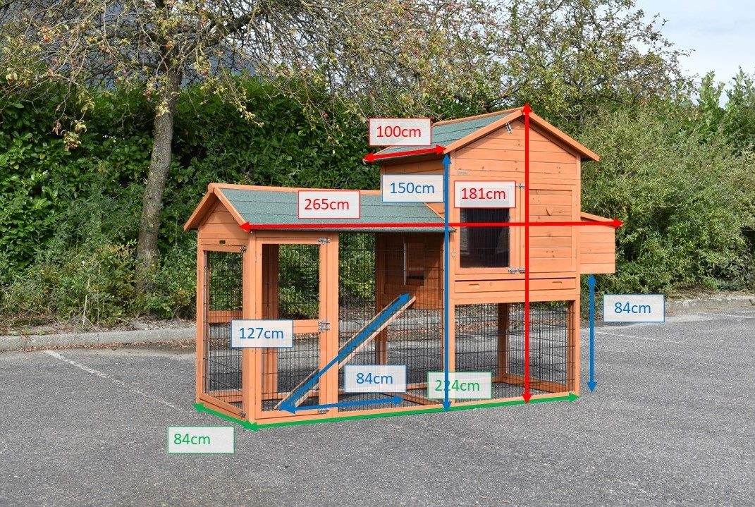 | Dimensions extérieures incluant le toit et nichoir (LxPxH) | 265x100x181cm |