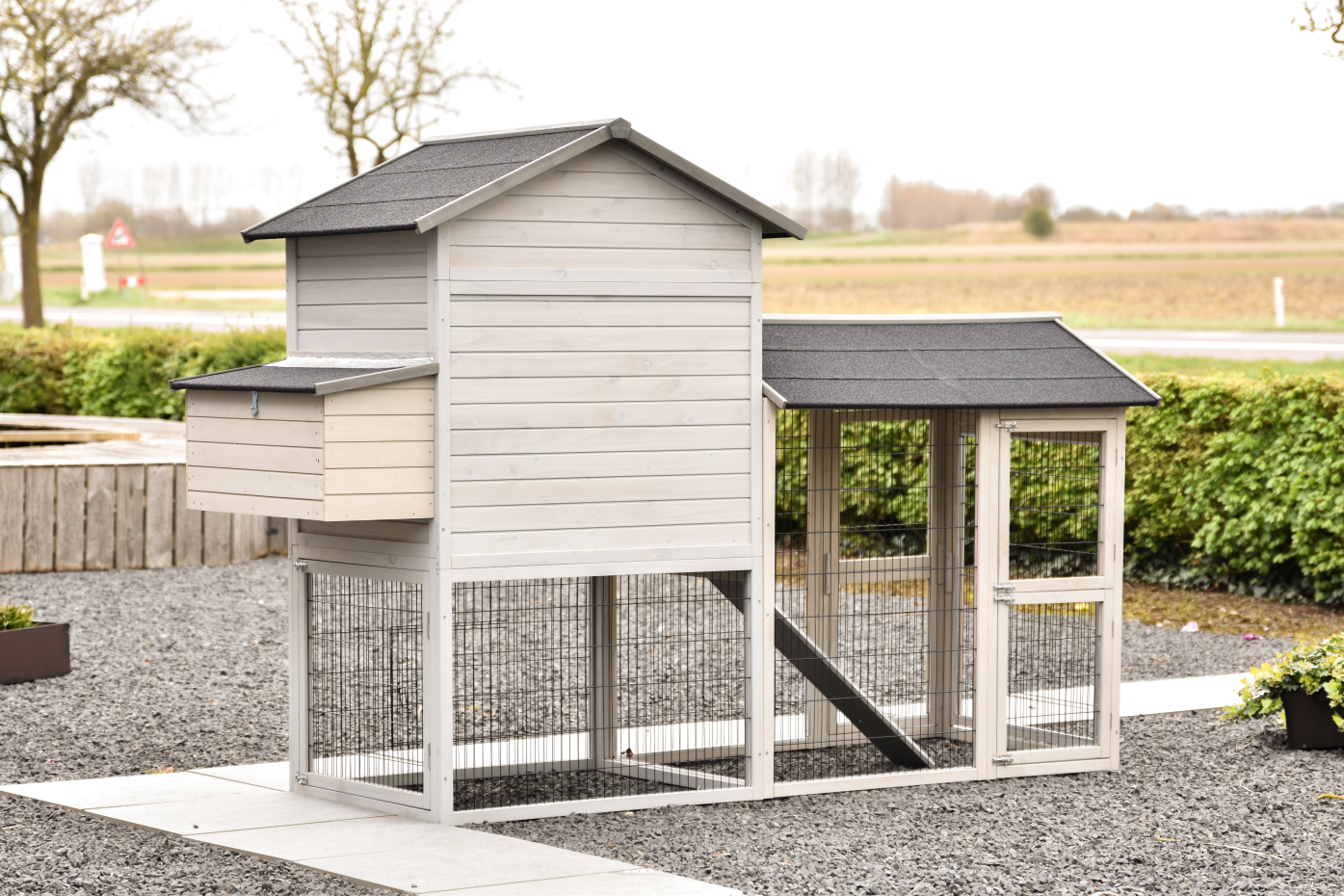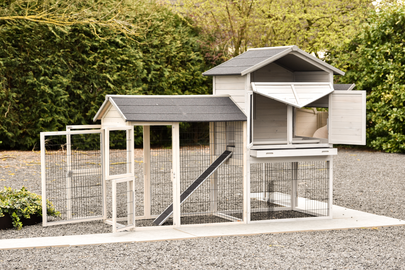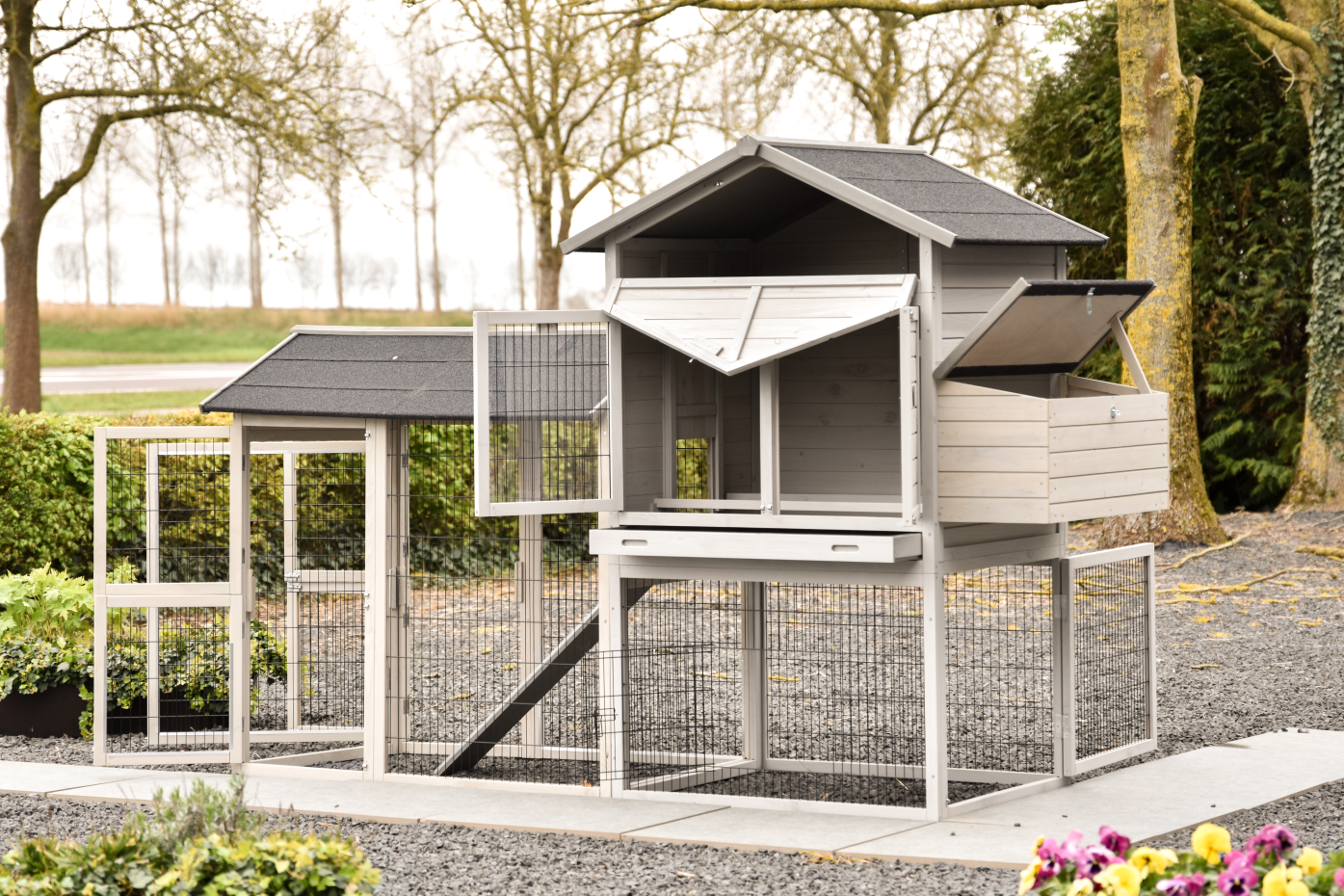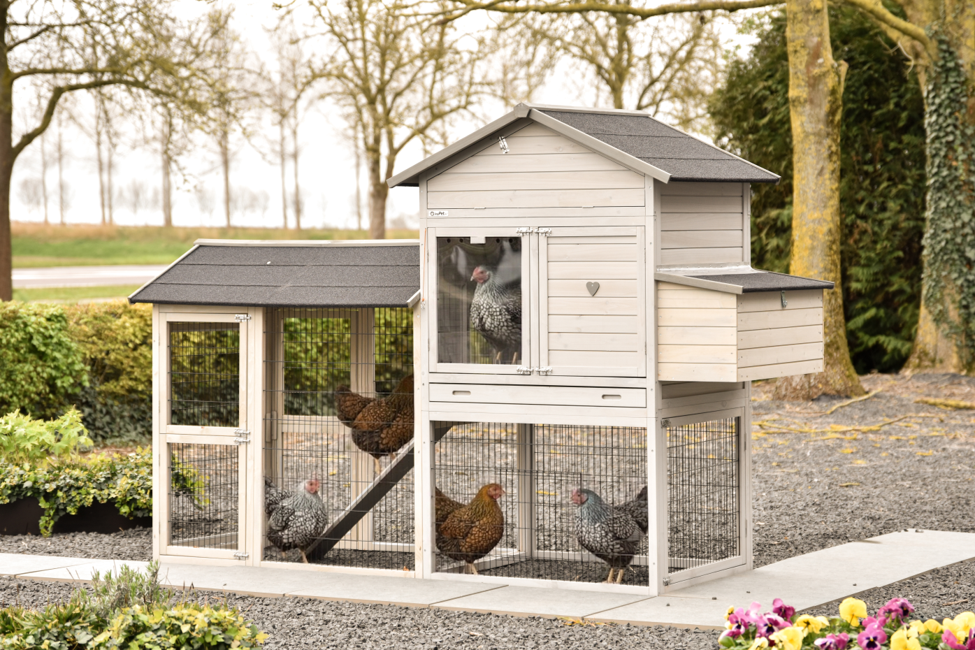 De plus, le poulailler Prestige Large avec pondoir peut être facilement agrandi avec des enclos supplémentaires pour encore plus d’espace