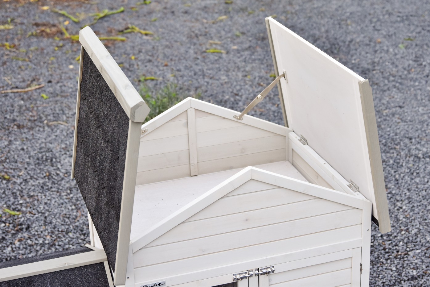 - Si ce n'est pas dans un endroit abrité, nous vous conseillons d'ancrer le clapier / poulailler