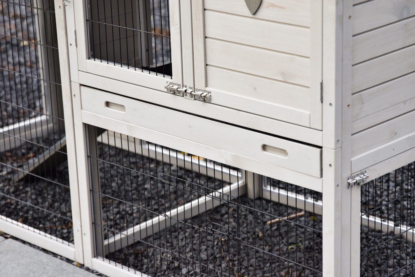 Il est conseillé de traiter périodiquement les charnières et les serrures avec un spray en silicone ou un spray pour serrures pour éviter la rouille et la corrosion. Si l'animal n'est pas dans un endroit abrité, nous vous conseillons d'ancrer l'enclos.