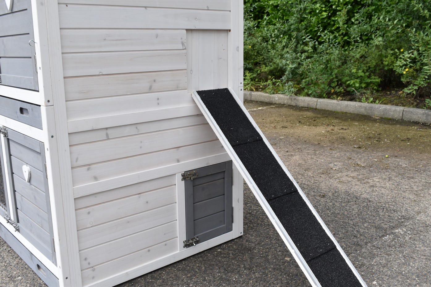 Ce poulailler est fini dans les moindres détails, avec de grandes portes, un tiroir coulissant pratique et un abri nocturne spacieux doté de deux perchoirs.