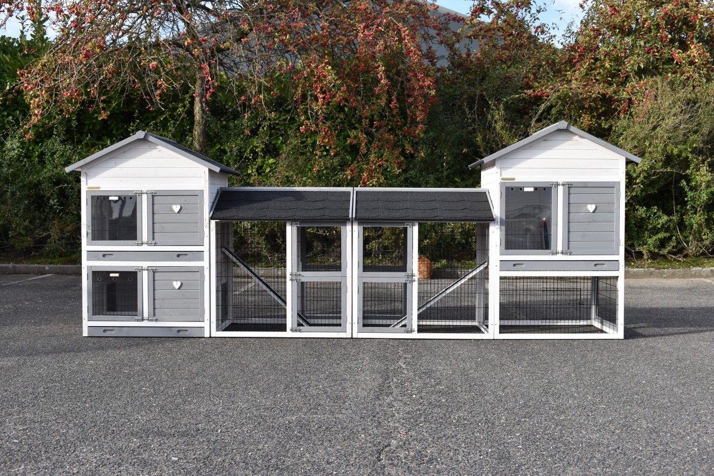 Ce modèle est combiné avec le poulailler Double Medium, offrant ainsi de la place pour 9 à 15 poules.