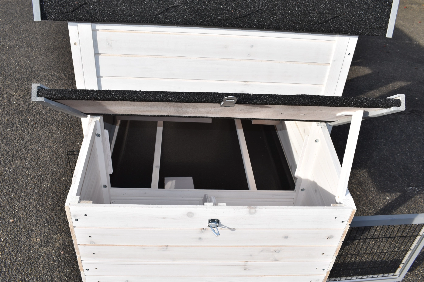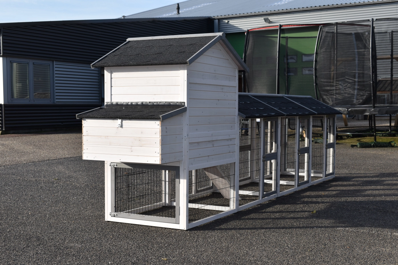 Ce poulailler est fini dans les moindres détails, avec de grandes portes, un tiroir coulissant pratique et un abri nocturne spacieux doté de deux perchoirs.