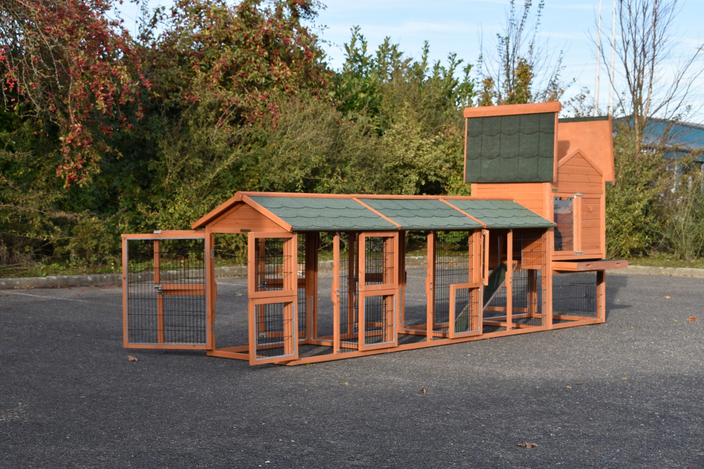 Poulailler Prestige Medium avec 3 enclos Dimensions max.: 397x91x150cm | Dimensions au sol: 380x75cm