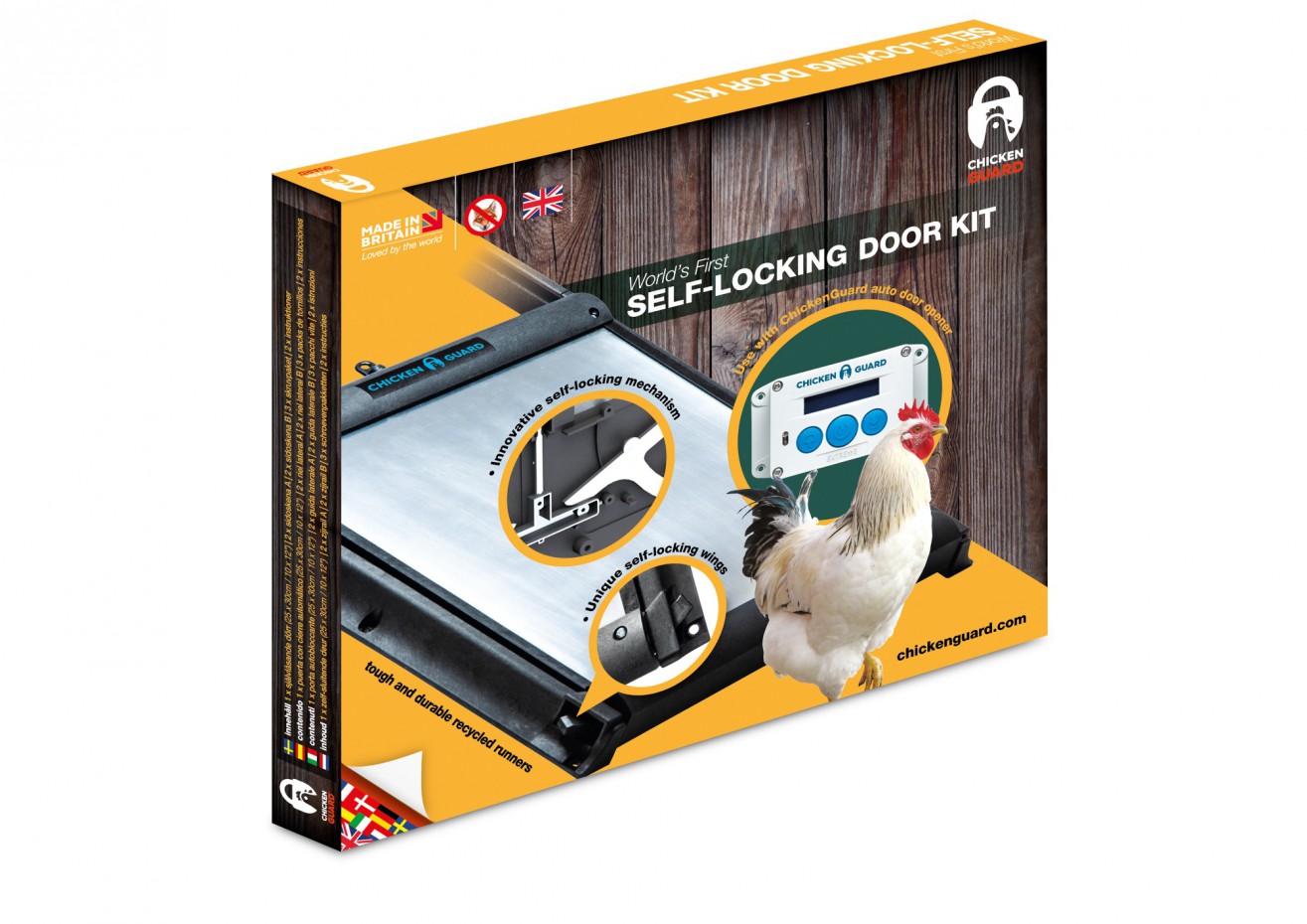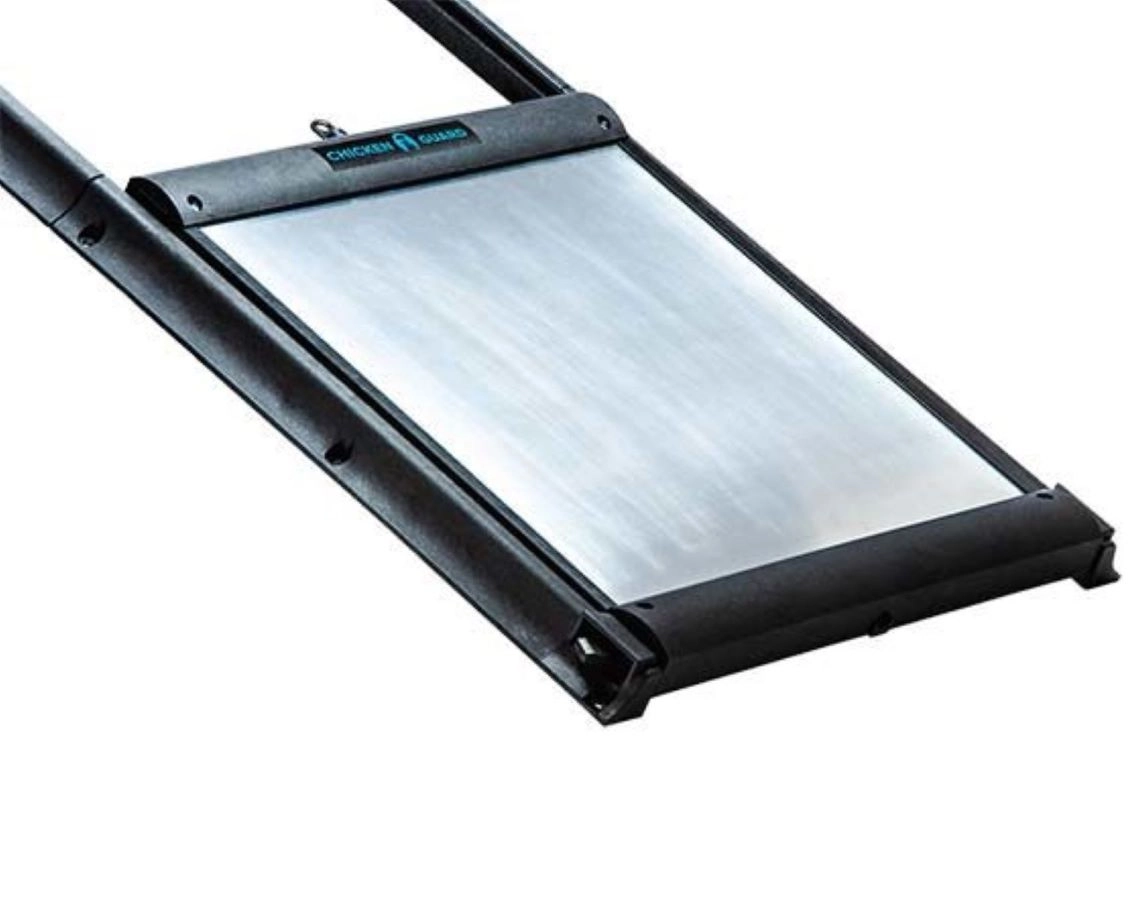Cette porte se verrouiile automatique pour protéger vos animaux contre des prédateurs. -Dimension de la plaque: 25x30 cm -Longueur des rails: 59,5 cm -Poids de la porte: 750 g