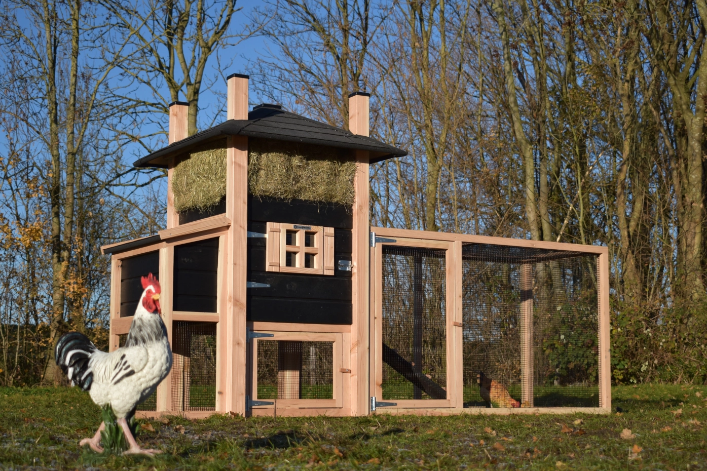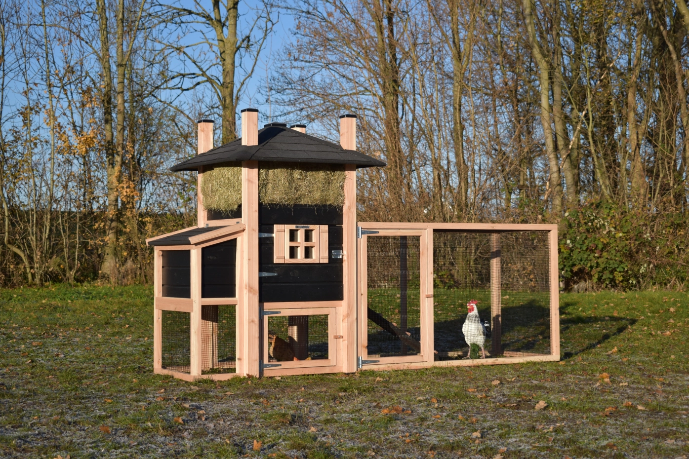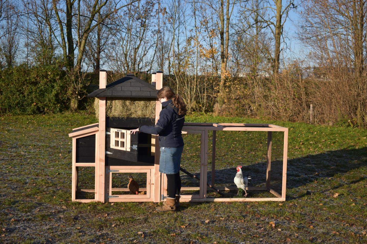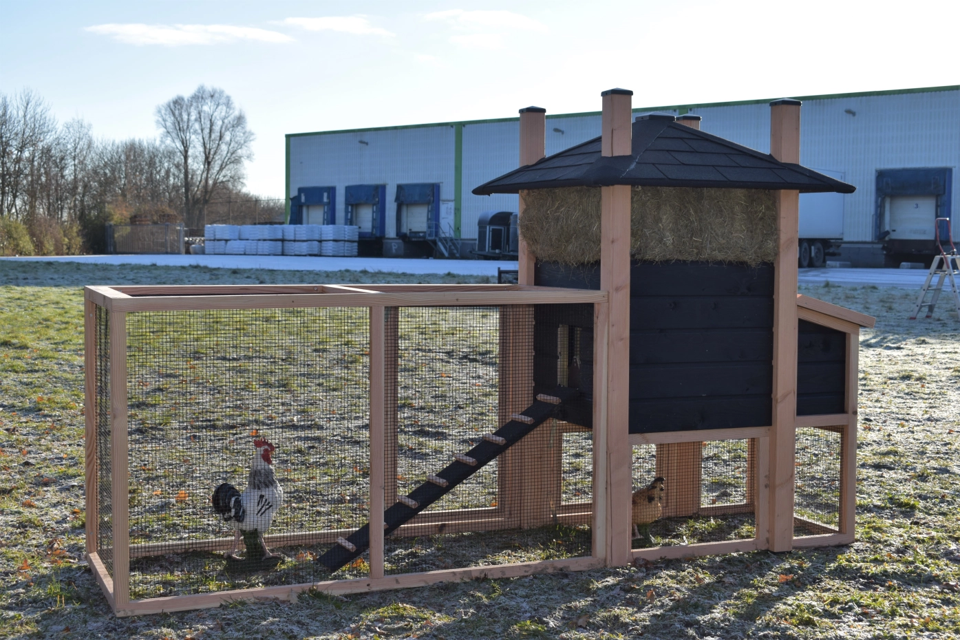 Le poulailler botte de foin Rosa est un achat pour votre jardin. Le clapier est étendue avec un enclos, avec toit de maille, et une pondoir. Le poulailler fermé est un grande porte, pour un nettoyage facile. La pondoir a un toit articulé, ainsi que vous pouvez ramasser les oeufs facilement.
