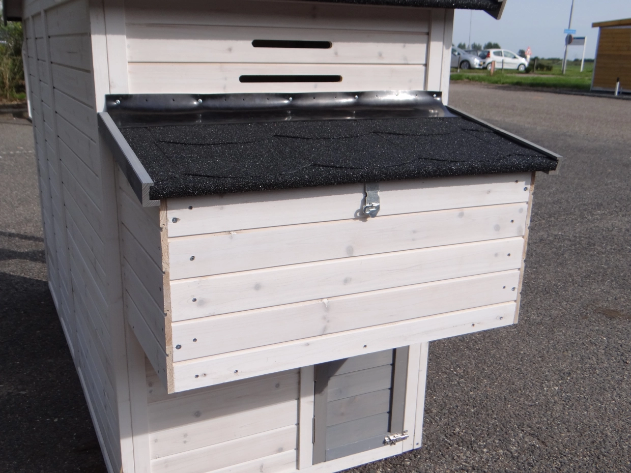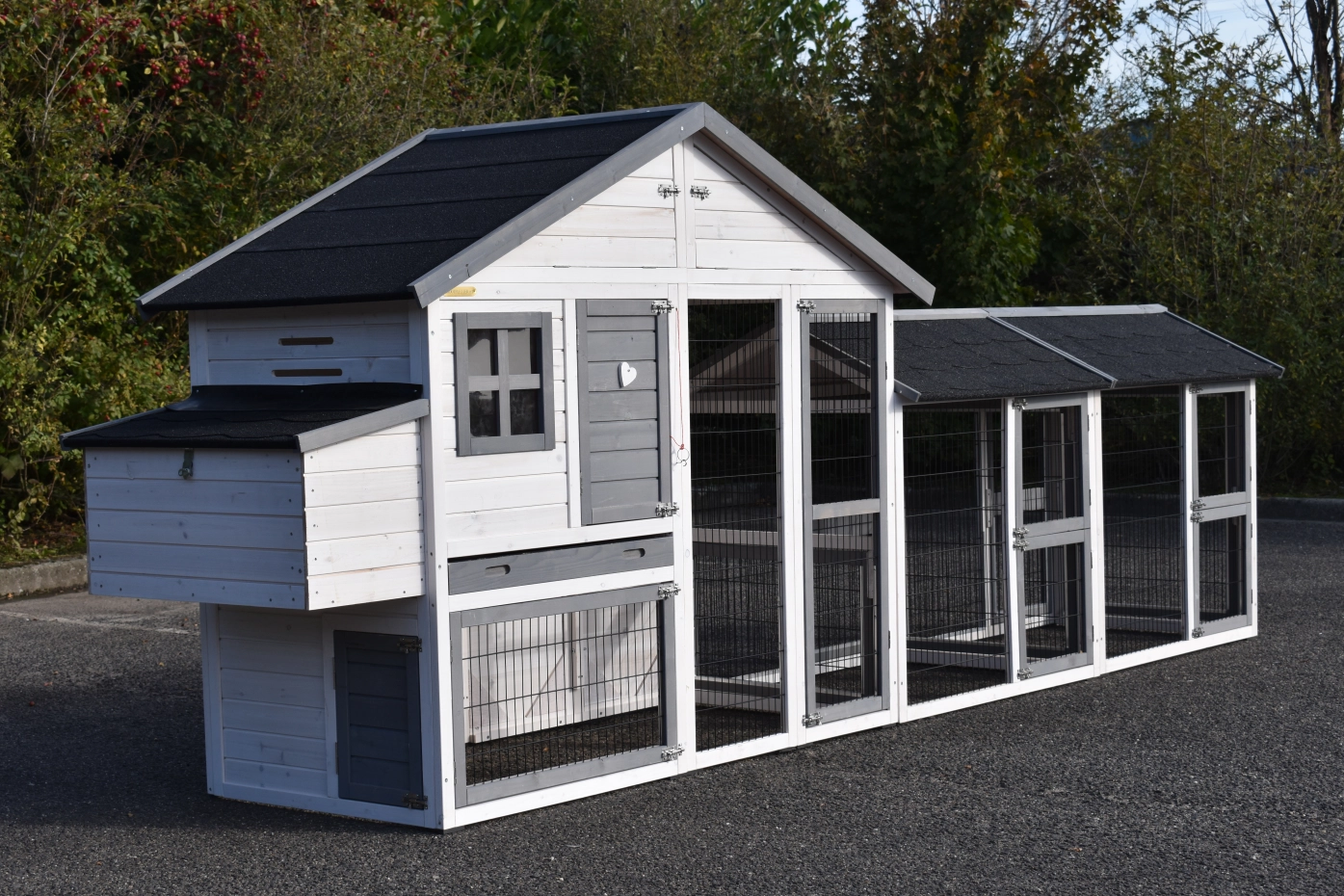 Le poulailler Holiday Medium avec 2 enclos supplémentaires est un poulailler très pratique et magnifique avec une nichoir et un grand enclos. Ce merveilleux poulailler est également équipé d'un pondoir sur le côté gauche. Le poulailler Holiday Medium convient pour héberger environ 3 à 5 poules