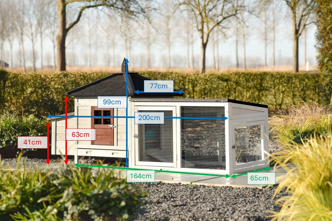 | Dimensions extérieures incluant le toit et nichoir (LxPxH) | 200x77x99cm |