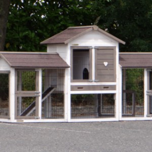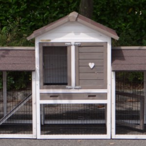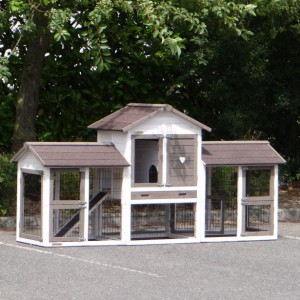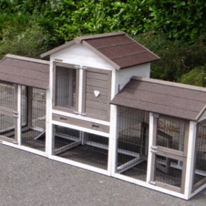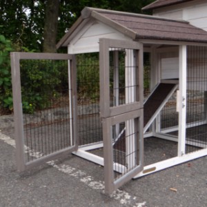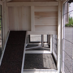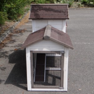 Pour protéger vos poules de la pluie, tempête ou du soleil, l'enclos est couvert avec un toit très forte. Le nichoir est équipé d'un tiroir pratique pour