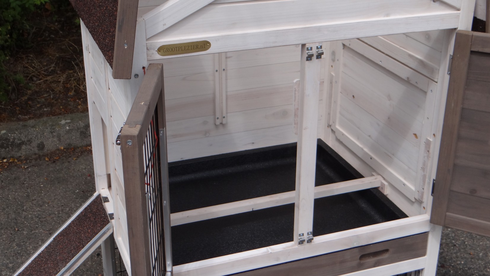 Il est conseillé de traiter périodiquement les charnières et les serrures avec un spray en silicone ou un spray pour serrures pour éviter la rouille et la corrosion. Si l'animal n'est pas dans un endroit abrité, nous vous conseillons d'ancrer l'enclos.