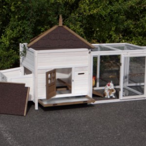 Ce poulailler est un beau poulailler en bois, avec tiroir pratique, et un pondoir. Très facille pour ramasser des oeufs!