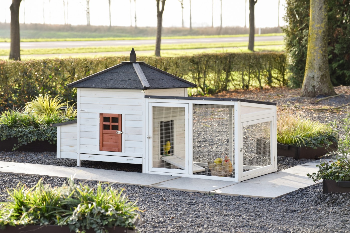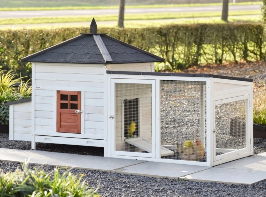 Ce magnifique poulailler Ambiance Large est parfaitement fini dans les moindres détails ! Il est équipé d'un tiroir à déjections extensible pratique et d'un toit amovible. Le poulailler Ambiance Large présente de beaux détails pratiques ainsi qu'un enclos utile pouvant être agrandi à l'infini. Ce module peut s'intégrer dans la plupart des jardins. Le poulailler fermé convient pour un maximum de 4 à 6 poules, en fonction de leur taille.