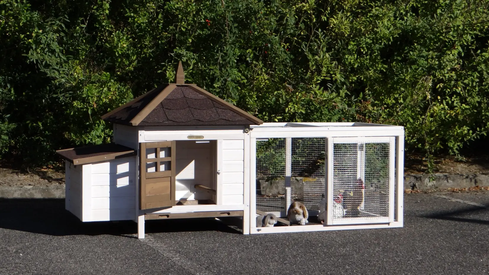 - Le clapier / poulailler est livré avec une instruction de montage simple