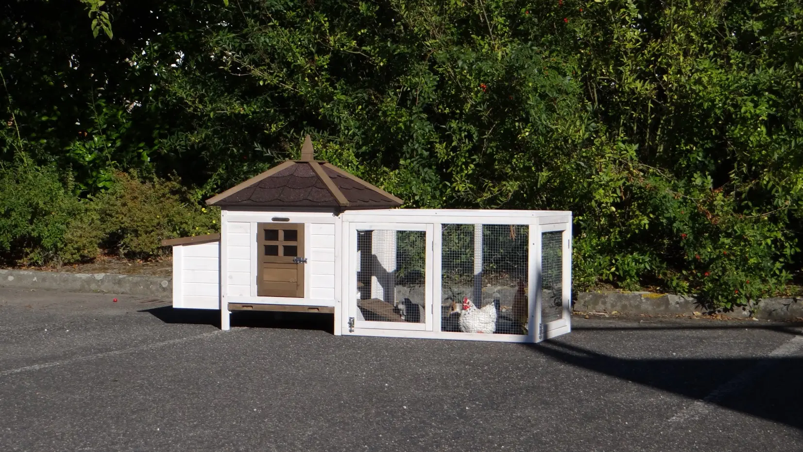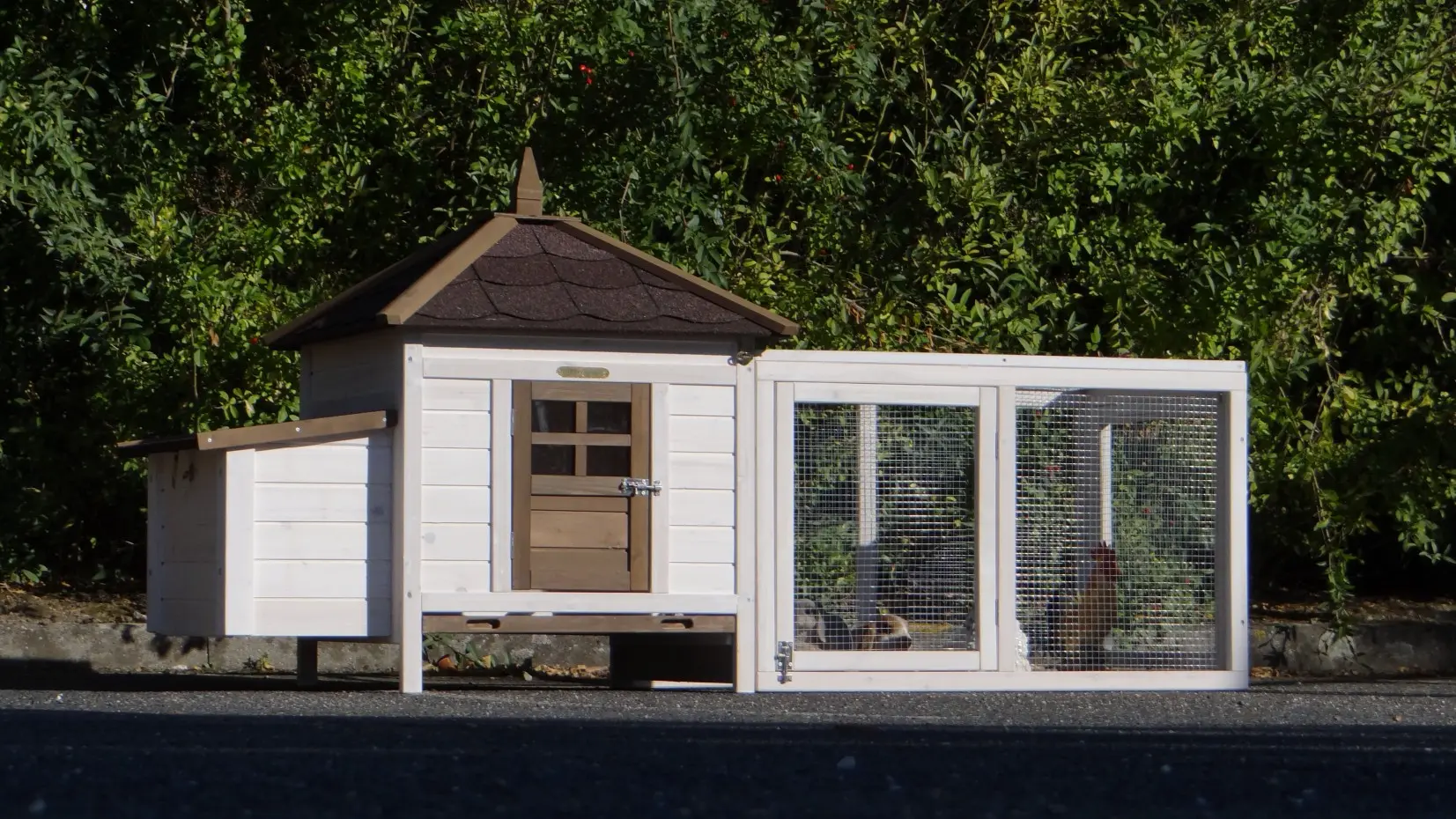 - Ce poulailler est équipé d'un nichoir