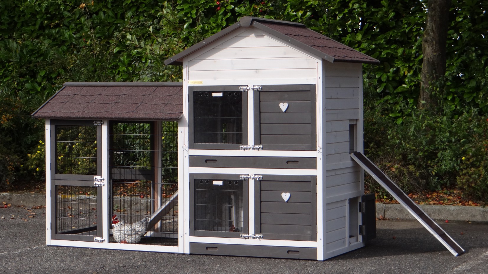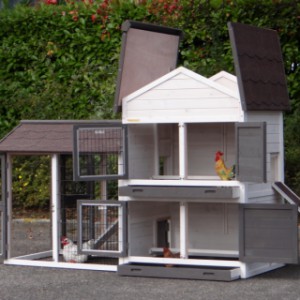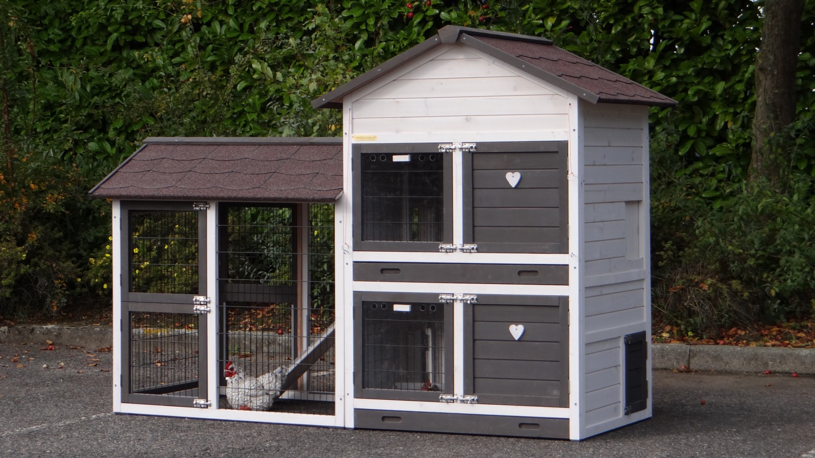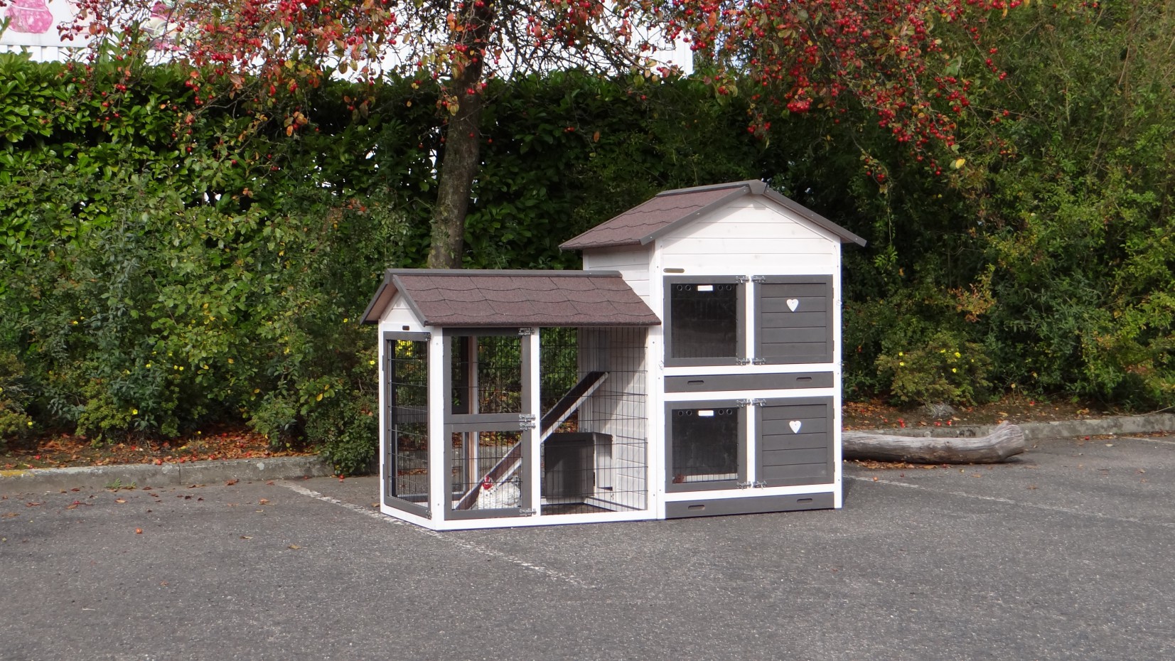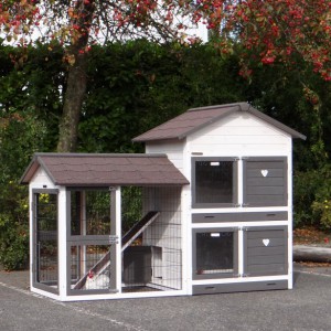 Le bois utilisé pour le loft est un produit naturel unique qu'a été produit dans le pays d'origine, après une sélection rigoureuse, dans une manière traditionelle. C'est caractéristique et unique à tous égards. Ce produit en bois a été un traitement manuel. Aucune pièce de bois ne possède la même forme, la même structure ou la même couleur, de sorte que les nuances de couleur sont inévitables, même dans un morceau de bois. Les fissures dues au vent, les craquelures, les imperfections et la présence de gros et de petits noeuds témoignent de leur origine et de leurs années de croissance. Les bosses sont généralement mises à jour manuellement avec du bois. Grâce à leur utilisation et à l’influence de la lumière, les nouveaux maisons pour animaux auront une couleur plus chaude au fil du temps. Les différences de couleur au modèle d'exposition sont donc possibles. L'enclos pour animaux est munie d'un fini antitache dans les couleurs comme sur la photo. Vous devez encore décaper le bois pour éviter les moisissures et la pourriture. Vous pouvez facilement commander des taches directement.